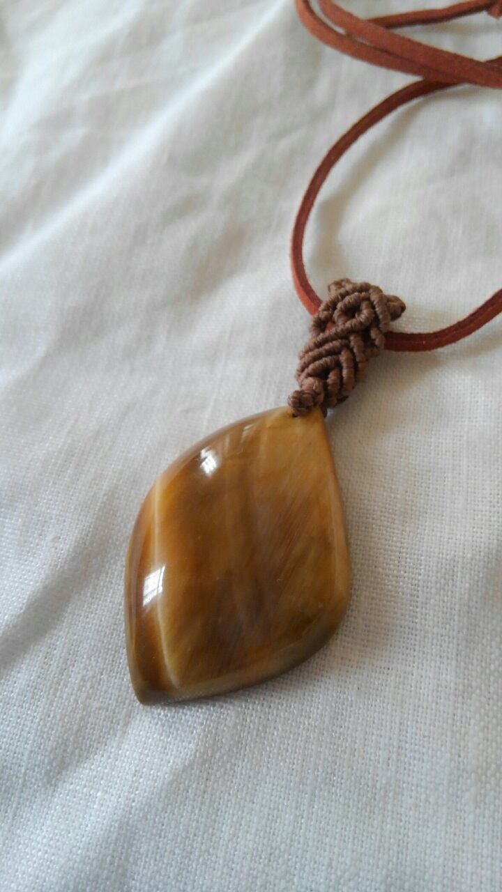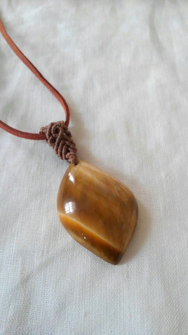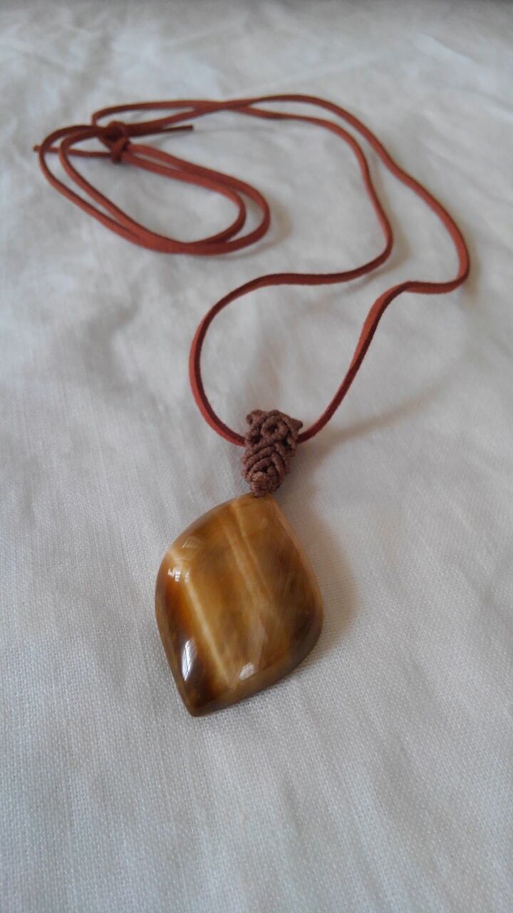タイガーアイ(虎目石) マクラメ編みデザインペンダント&スエード調紐 重さ約16g
