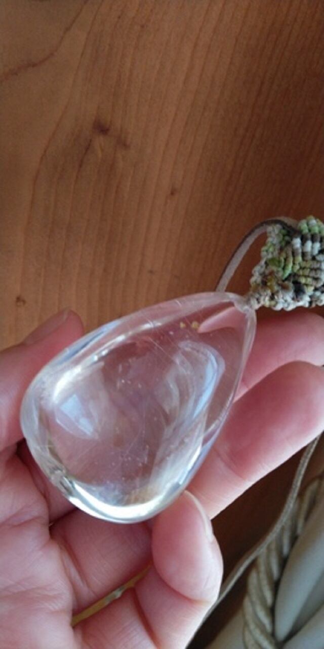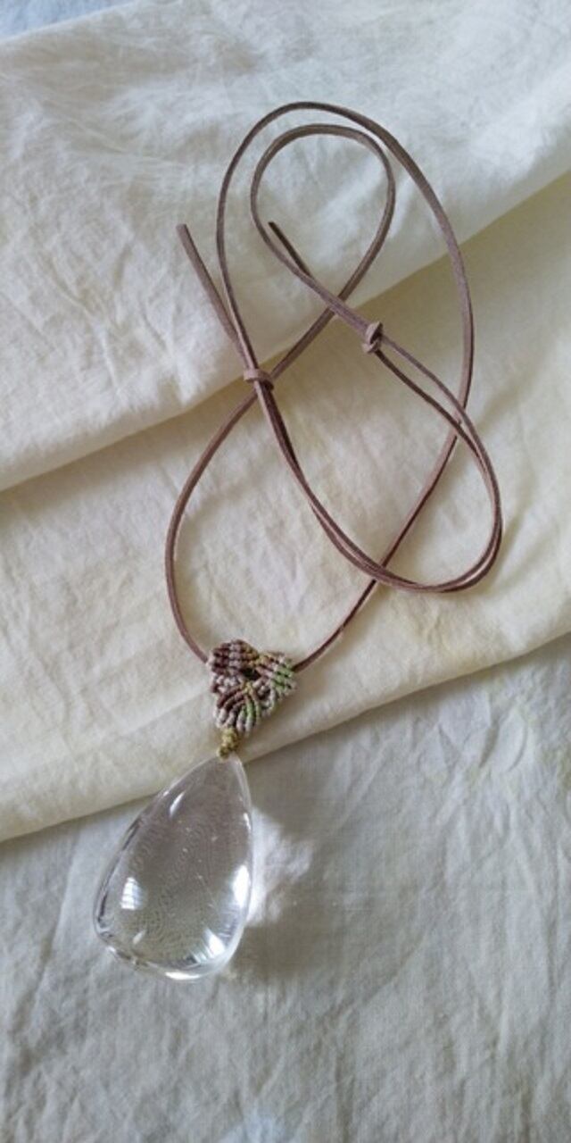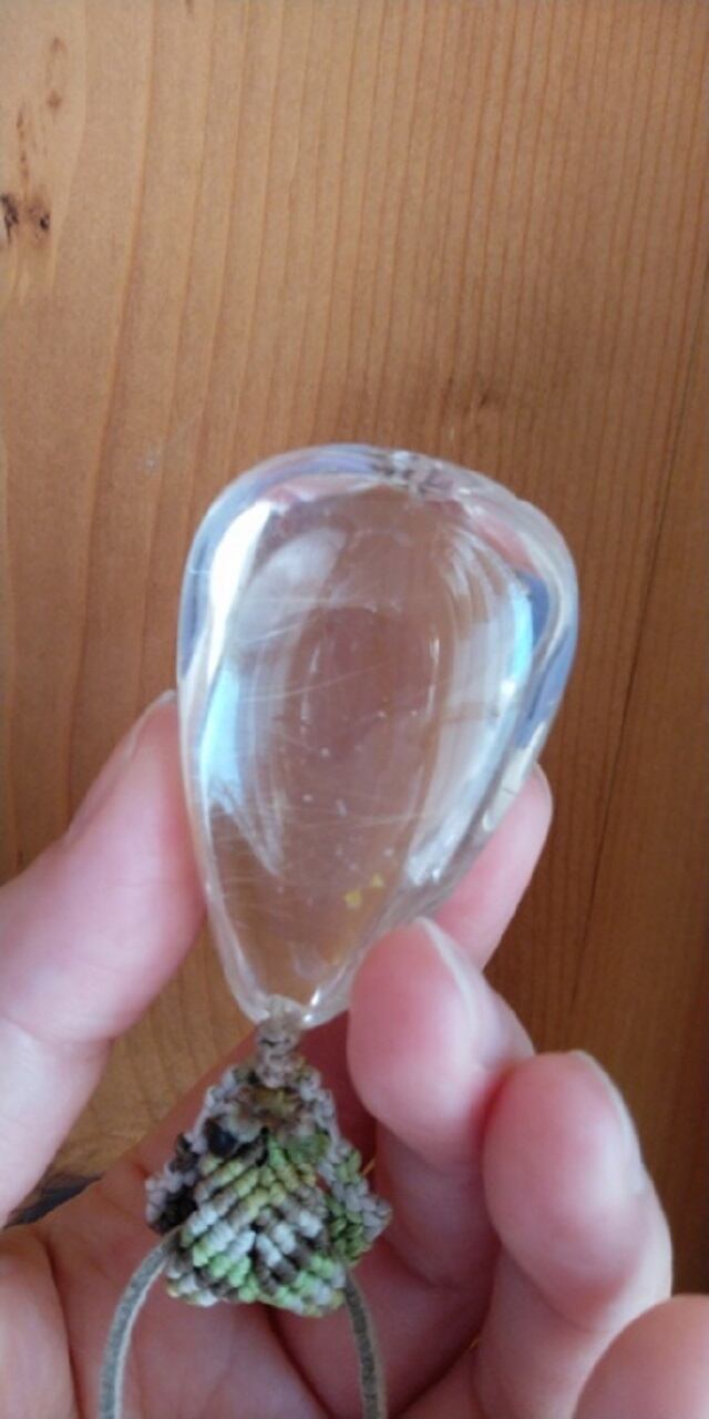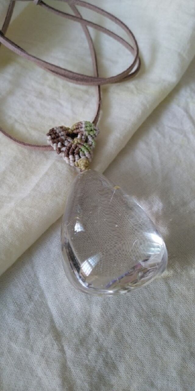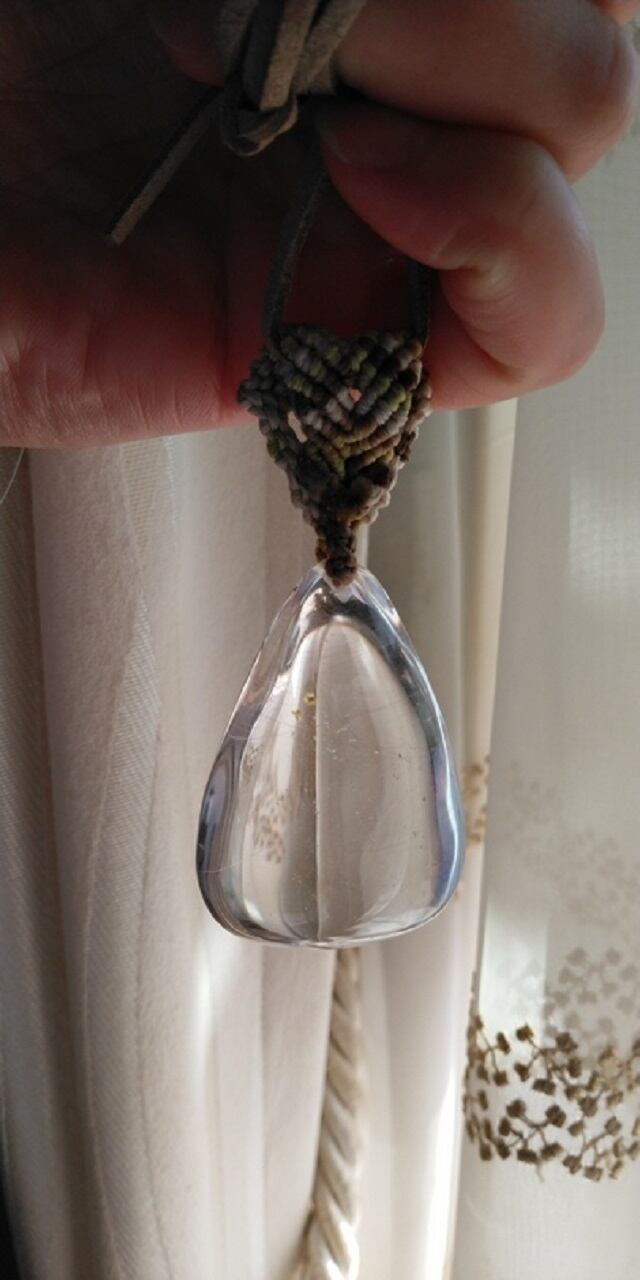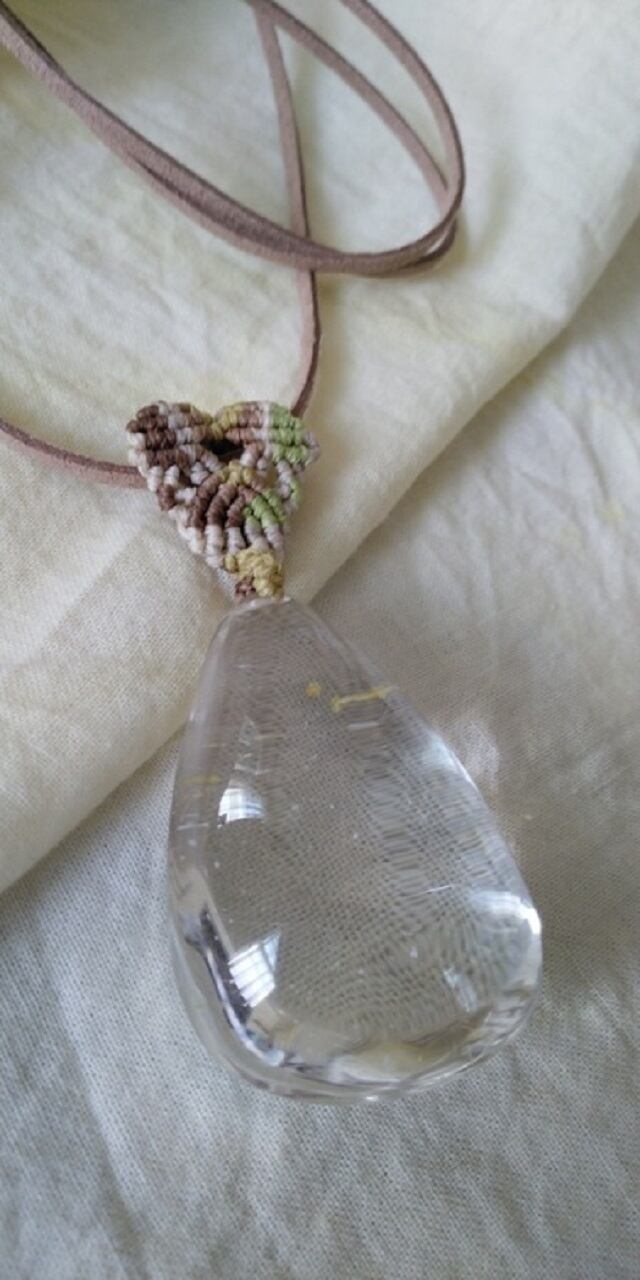 大粒 プラチナルチルクォーツ マクラメ編みデザインペンダントトップ&スエード調紐 重さ約47g
