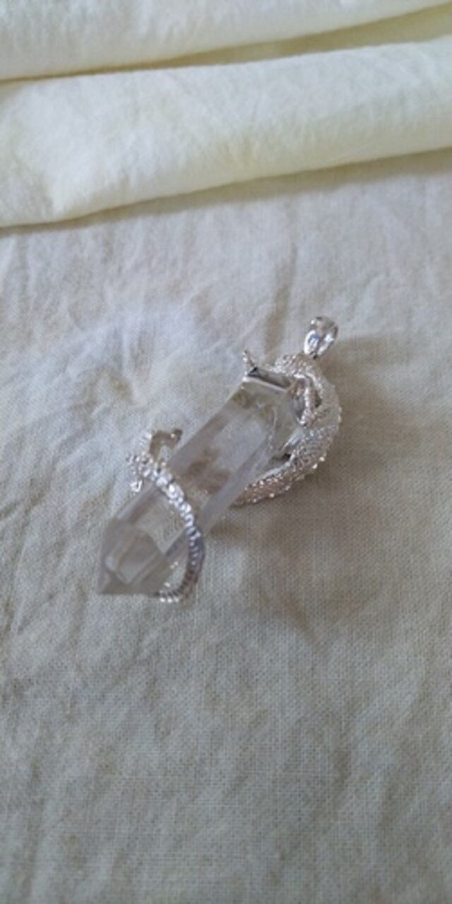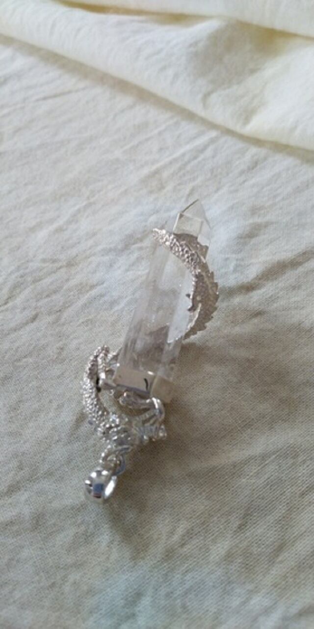 水晶ポイント 金具Silver925製・龍神様デザイン ペンダントトップ 重さ約17g