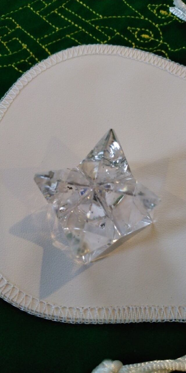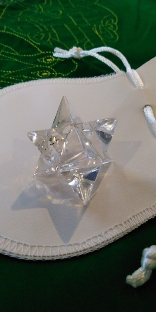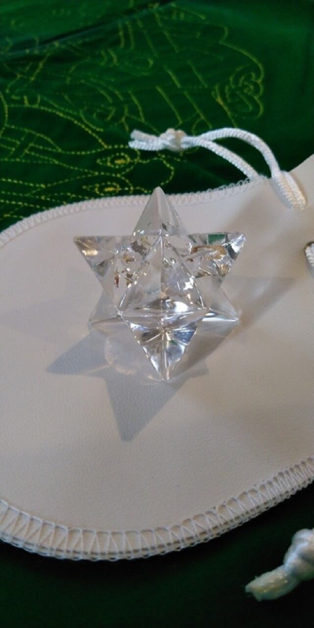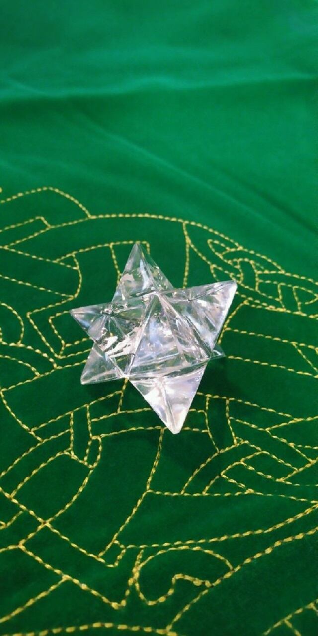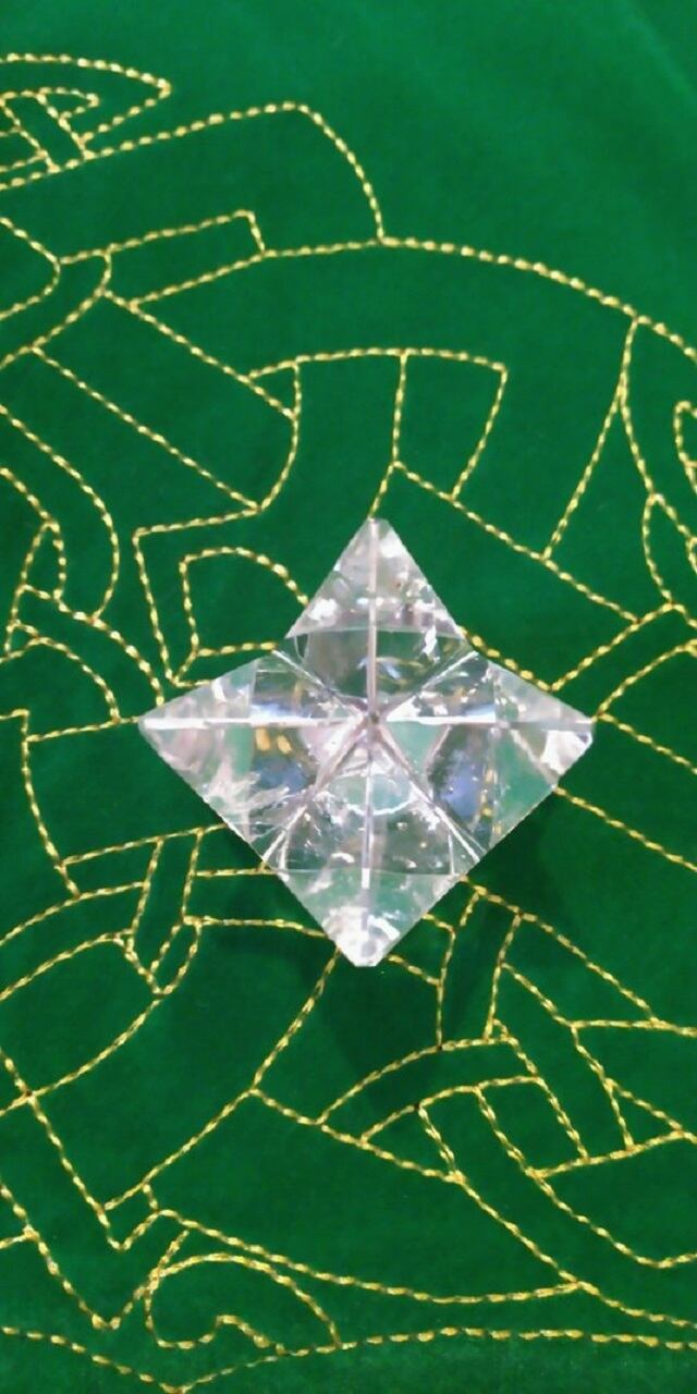 二つの正三角形を上下反対に組みあわせた形状をヘキサゴンと呼び、創造のシンボルとされ自然界に生命エネルギーを放出する形といわれます。ヘキサゴンは上向きと下向きの相反する二つの三角形を組み合わることで、安定したパワーを常に放つと考えられています。このマカバスター(マルカバスター)はそのヘキサゴンを立体的にした形状となります。二つのピラミッドを合体させた形状は、古代より世界各地で魔法陣や秘術の道具として用いられたヘキサゴンのパワーをより強力に発揮させるといわれ、魂を異次元へ運ぶともいわます。