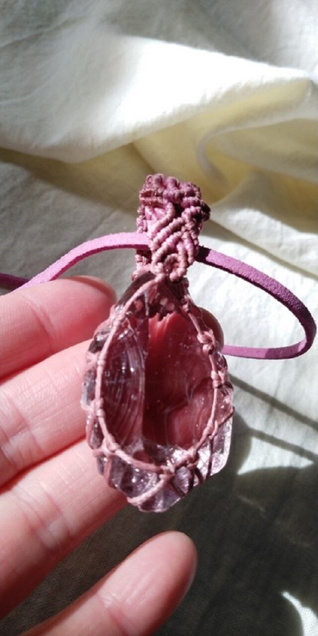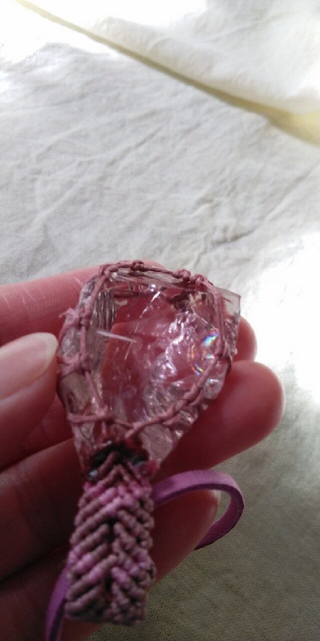 シェラネバダ産 アンダラクリスタル デザートローズ(オレンジピンク)マクラメ編みペンダントトップ&スエード調紐 重さ約18g