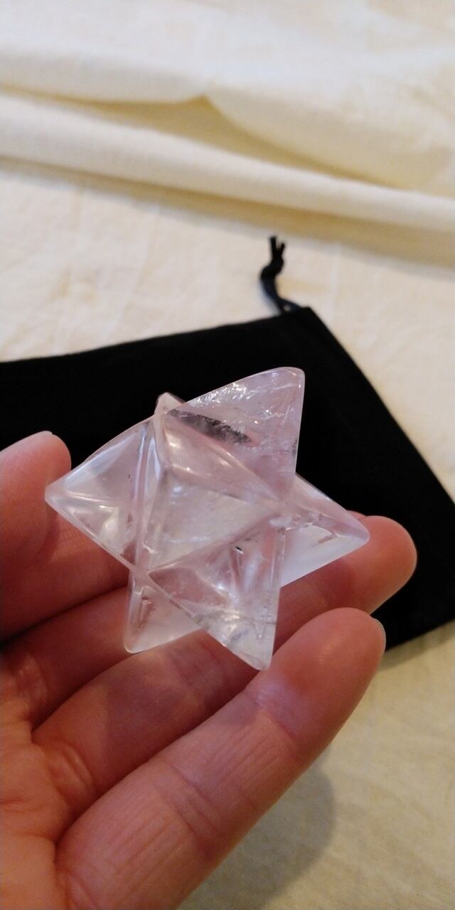 二つの正三角形を上下反対に組みあわせた形状をヘキサゴンと呼び、創造のシンボルとされ自然界に生命エネルギーを放出する形といわれます。ヘキサゴンは上向きと下向きの相反する二つの三角形を組み合わることで、安定したパワーを常に放つと考えられています。このマカバスター(マルカバスター)はそのヘキサゴンを立体的にした形状となります。二つのピラミッドを合体させた形状は、古代より世界各地で魔法陣や秘術の道具として用いられたヘキサゴンのパワーをより強力に発揮させるといわれ、魂を異次元へ運ぶともいわます。