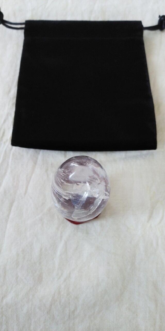 【限定品】虹入り ブラジル産水晶 エッグ型 重さ約82g 台座・ポーチ付属