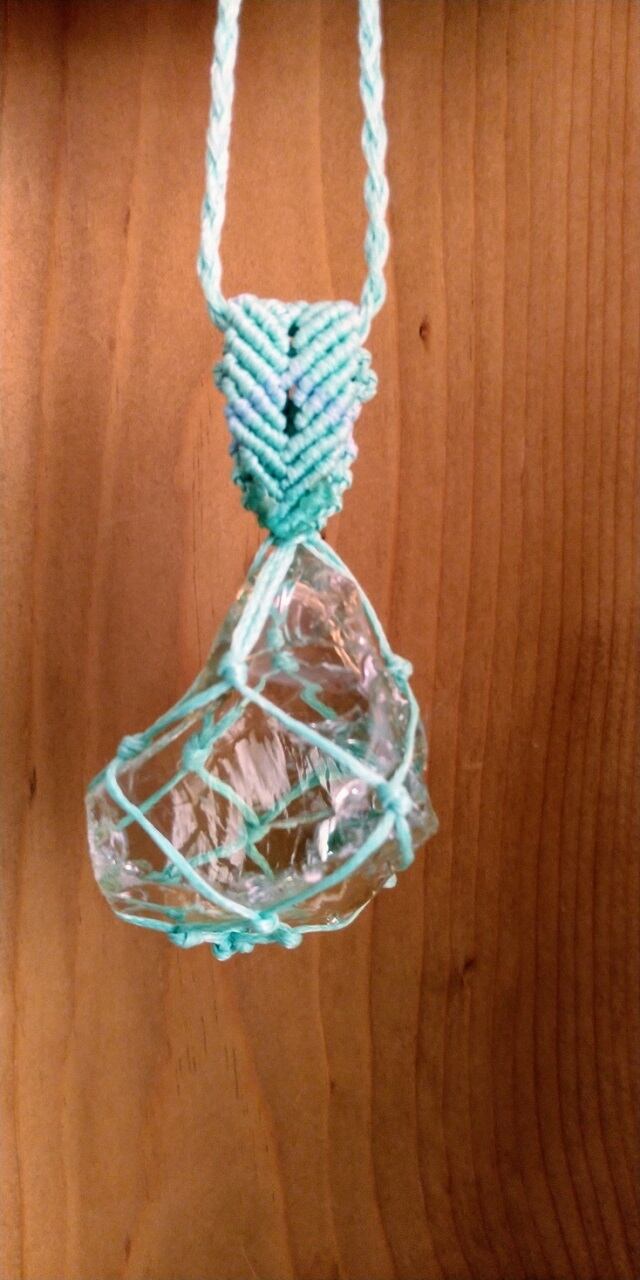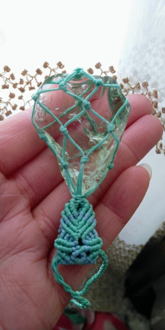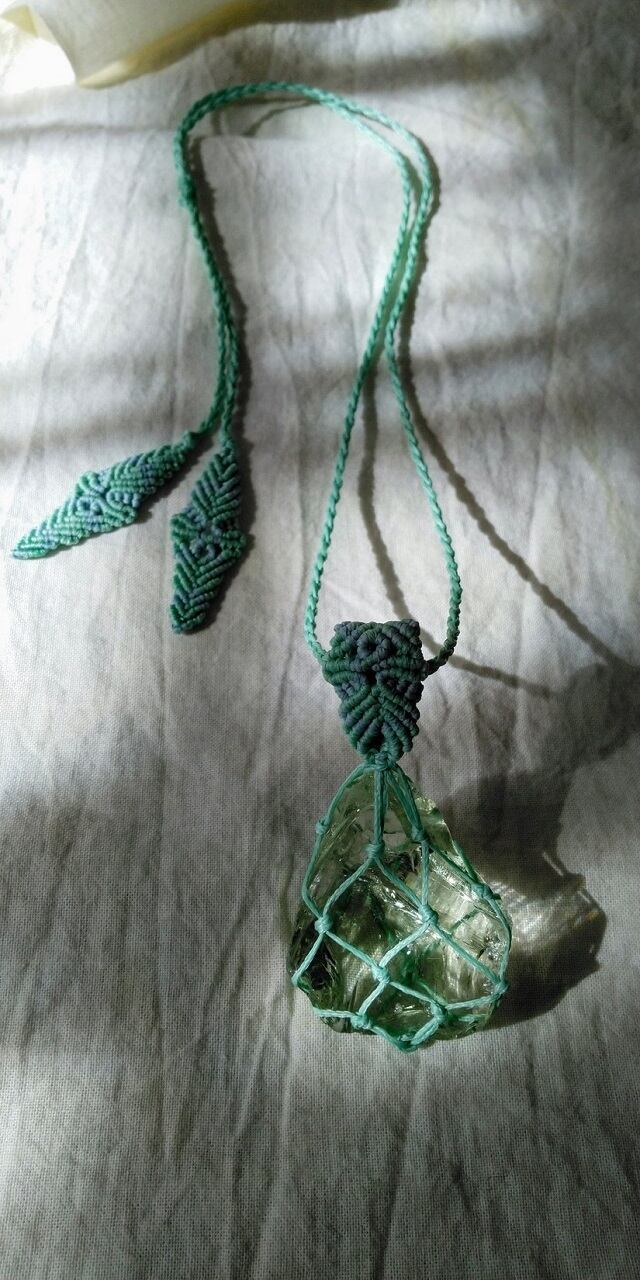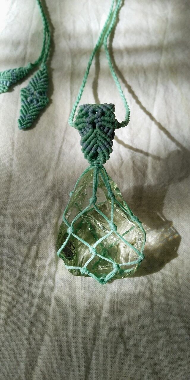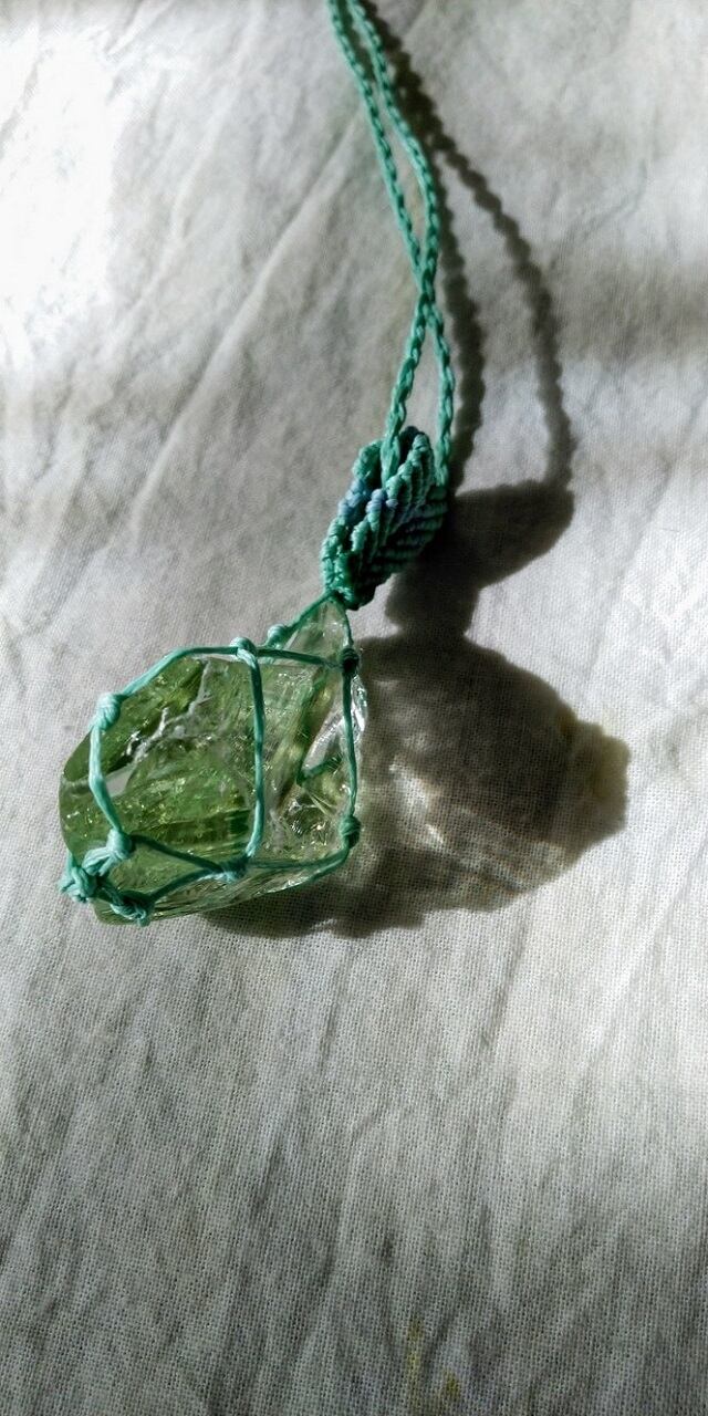 【K様によるオーダー】シェラネバダ産 アンダラクリスタル テラオリーブ マクラメ編みデザインネックレス 紐長さ約75㎝位まで調節可能