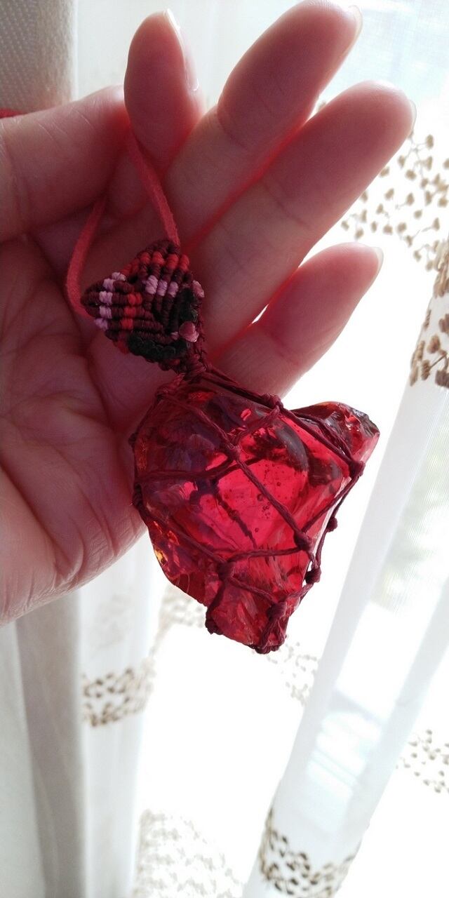 【A様によるオーダー】シェラネバダ産 アンダラクリスタル レムリアンサンライズ原石マクラメ編みデザインペンダントトップ&スエード調紐 重さ約39g ポーチ付属