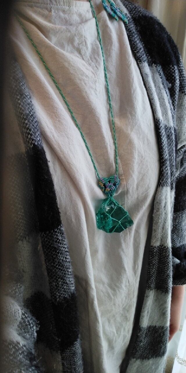 【Rare Color】シェラネバダ産アンダラクリスタル イナンナズ・ウィズダム(オラクルクリア内包) マクラメ編みデザインネックレス 紐長さ約96㎝位まで調節可能