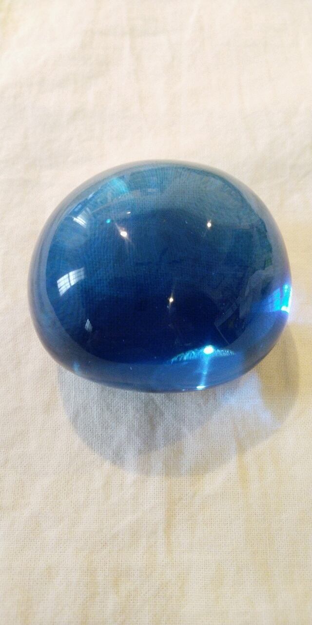 こちらは気品溢れるブルーのアンダラクリスタルとなります。微細な気泡も見られる大変魅力的な石となります。この石は見ているだけでも背筋がピンと伸びるのですが、手にすると肝の据わったとても頼りになる御姉様といった印象を受けます。