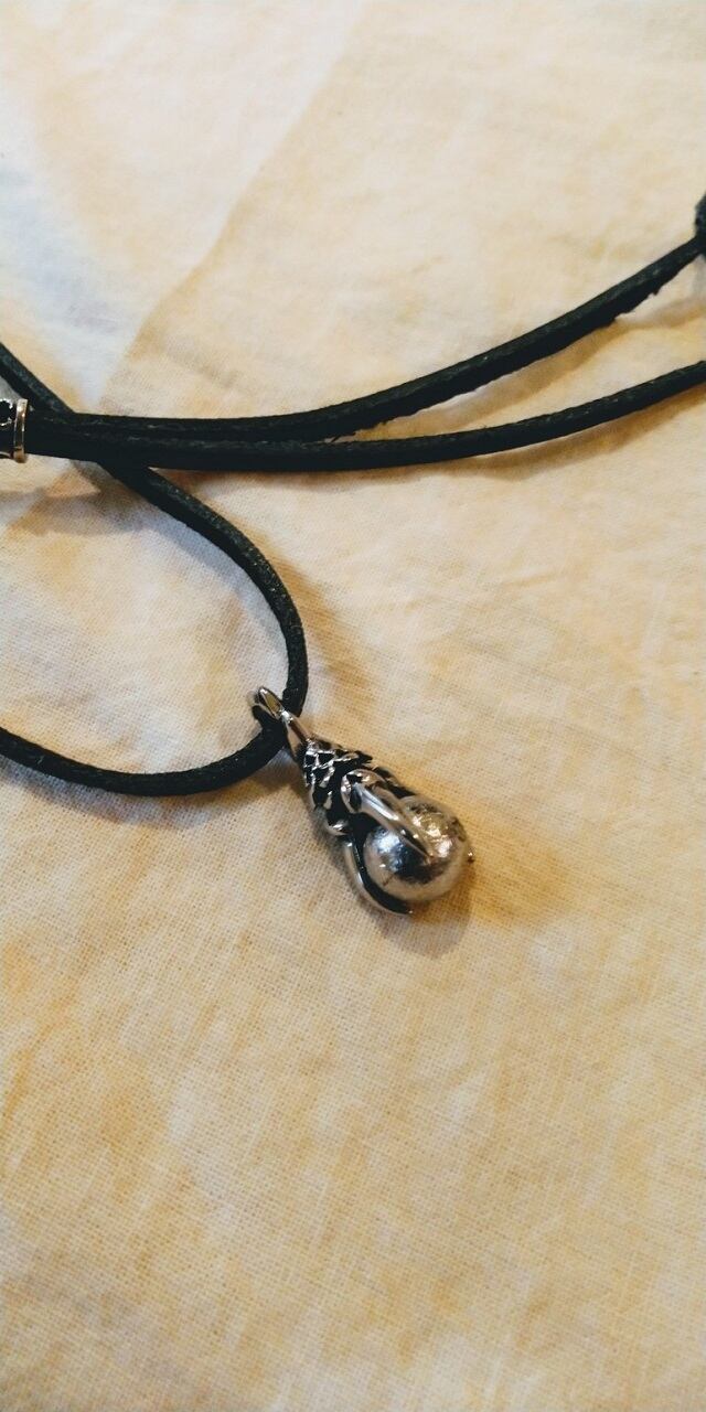 ナミビア産ギベオン・クロー(鳥獣の鉤爪)型デザインペンダント&国産牛革製シルバーアジャスター付きチェーン(黒色) 約80㎝(長さ調節可能)ポーチ付属