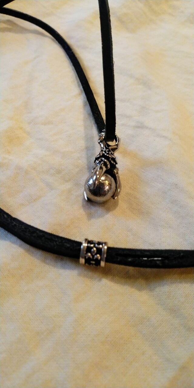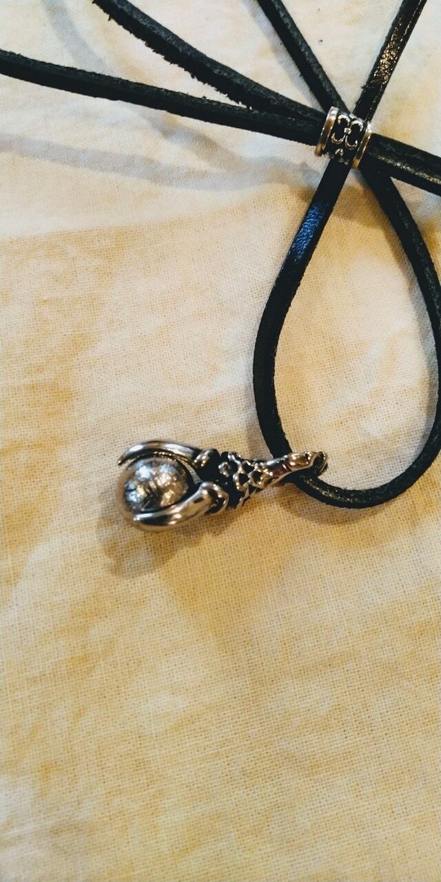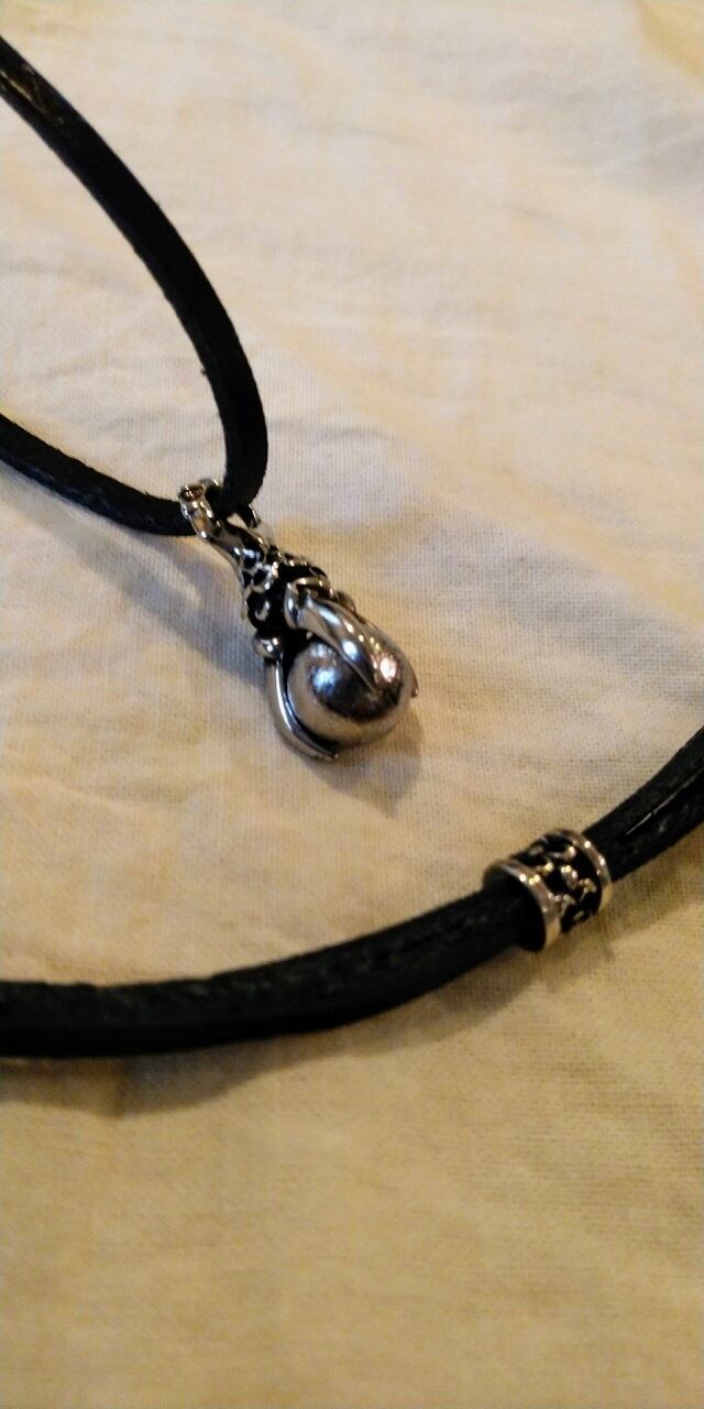 チェーン:国産牛革製シルバーアジャスター付きチェーン約80㎝(Silver925製アジャスターをスライドさせることにより長さ調節可能)、牛革(黒色)幅約3㎜(自然素材によりお取り扱いにはご注意願います。)
