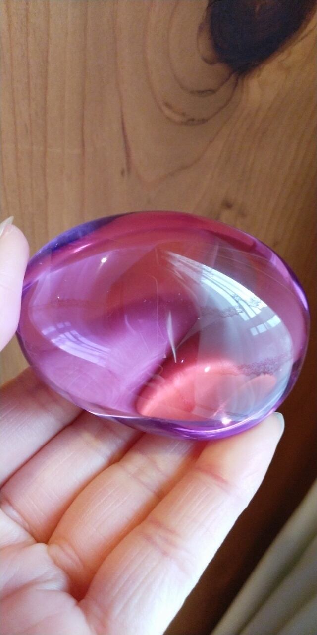 【Rare Color】インドネシア産 アンダラクリスタル パープルピンク ポリッシュ 重さ約123~124g ポーチ付属