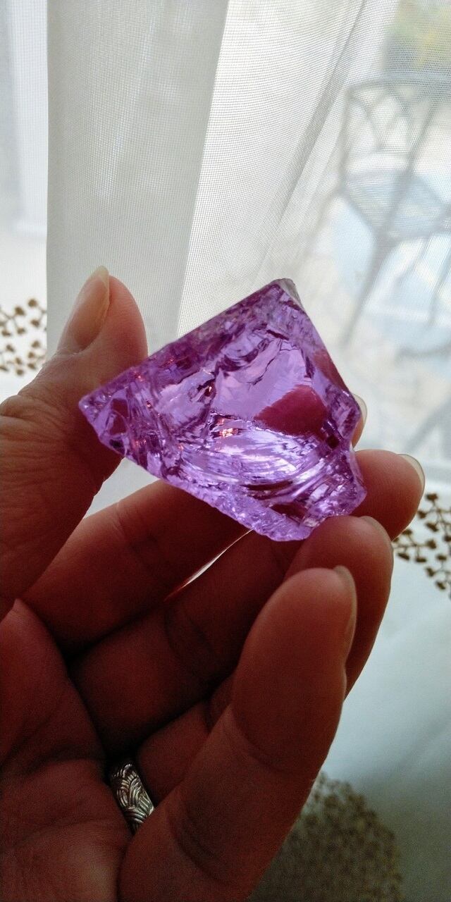 インドネシア産アンダラクリスタルのカラーバリエーションは多様にございますが、こちらは光の質や角度によりピンクやパープルカラーに見える神秘的なアンダラクリスタルとなります。美しすぎて目をそらせない様な、ワンオクターブ上の波動を感じるアンダラクリスタルではないでしょうか。持つ方それぞれ感じ方は異なるでしょうが、このライトマゼンタが身体のクラウンチャクラを通じ、宇宙と大地を真っ直ぐつないでくれるかのようです。凛とした波動のアンダラクリスタルだと感じられます。