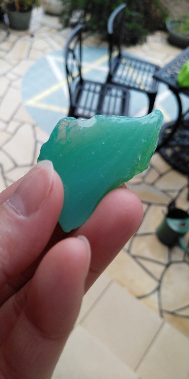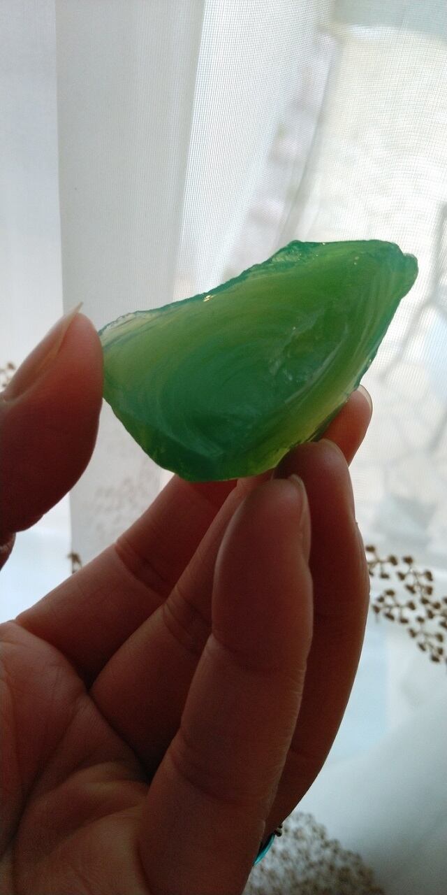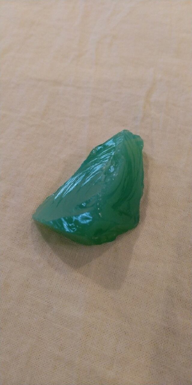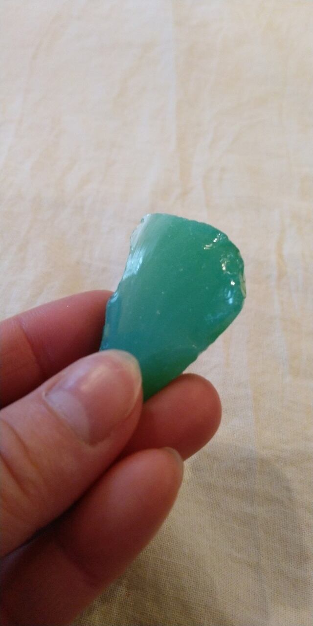 インドネシア産アンダラクリスタルのカラーバリエーションは多様にございますが、こちらはレアカラーなアップルグリーンのアンダラクリスタルとなります。天然石に例えるならば高品質なクリソプレーズのように品のあるお色目で、半透明なアップルグリーンは見ているだけでも優しい気持ちになる印象を受けるのですが、触れると柔和な質感にも大変癒されます。