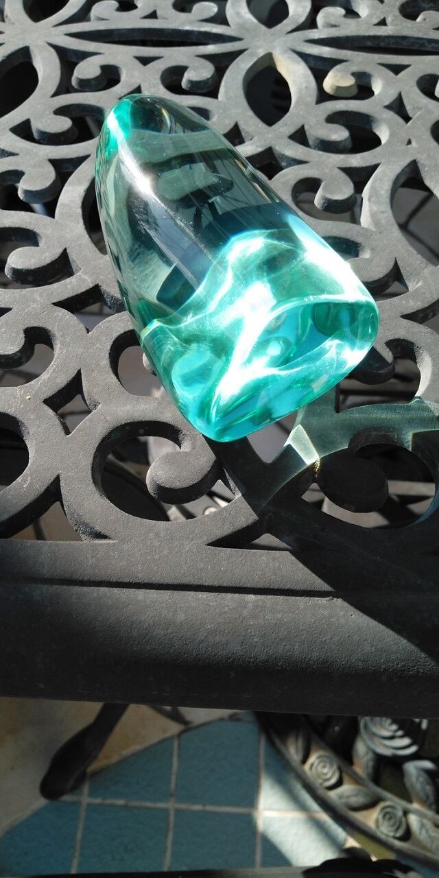 インドネシア産 アンダラクリスタル ライトブルーグリーン フリーフォームポリッシュ 重さ約496~497g