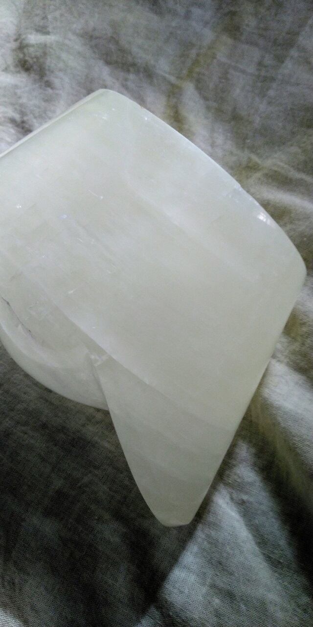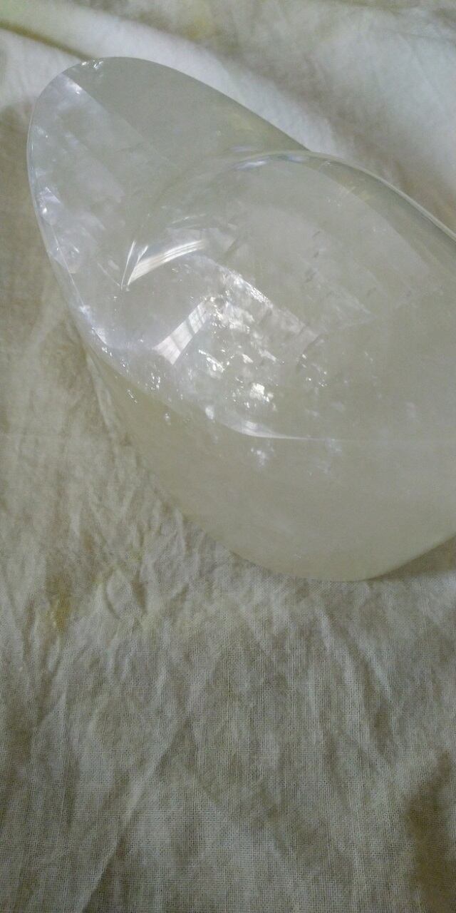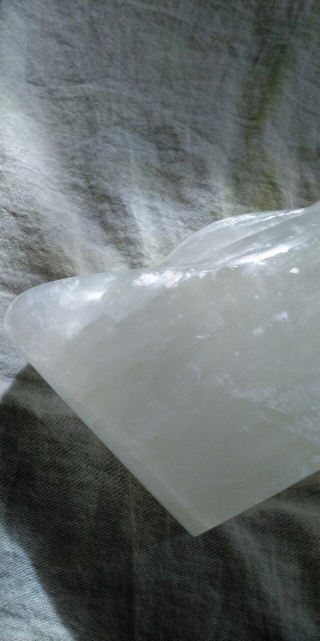 カルサイトは精神のバランスを整えてくれる、持つ方にそっと寄り添う石といわれます。人間の骨や歯の主成分であるカルシウムを含む、代表的な石の一つがこのカルサイトです。世界中で様々な種類が産出され、劈開(へきかい)という一方向にだけ割れる性質を持ちます。治療石としての古い歴史があり、漢方薬に用いられるそうです。またこちらはイエローカラーのカルサイトとなります。身体に元気を与え、意欲を高め、現実のパワーと創造的なエネルギーをもたらしてくれるといわれます。太陽光や流水により、変色したり形をそこなう恐れがございますので、月光浴や香り、音による浄化方法をおすすめいたします。角度により虹も見られる大変魅力的な石となります。