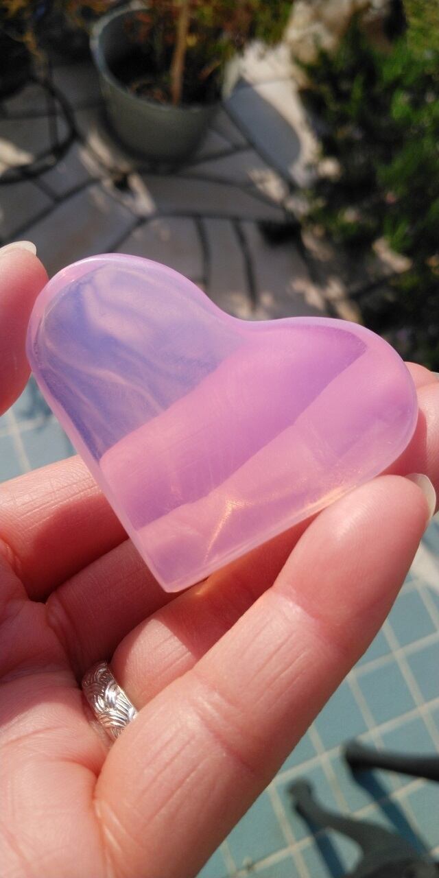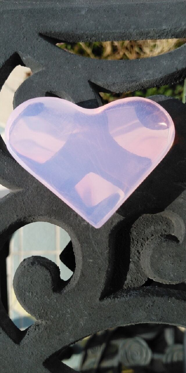インドネシア産アンダラクリスタルのカラーバリエーションは多様にございますが、こちらは見た目にも優しく明るいミルキーなピンクが可愛すぎる為、溜息がこぼれるほどのアンダラクリスタルとなります。感じ方は人それぞれ異なるでしょうが、これらのアンダラクリスタルからは持つ方を愛し愛され癒し癒される、その様な印象をお受けいたします。こちらは桜色に発色し、光の質や角度により明るいコーラルピンクが光り輝く大変美しい一点物のアンダラクリスタルとなります。ぷっくらと厚みがある可愛らしいハートシェイプに心がとても温かくなりました。今のところシーフォーム(気泡)やインクルージョンは見受けられませんが、持つ方の元で変化するかもしれません。