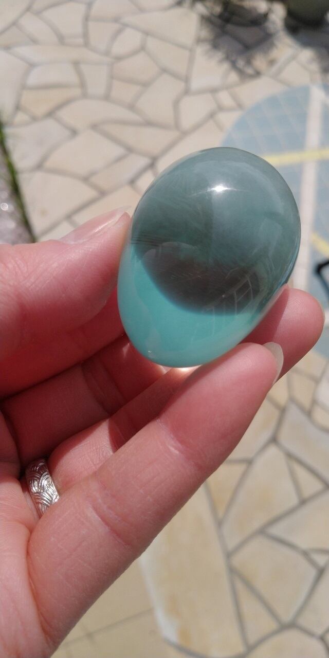 Mystic andara ☆ インドネシア産 アンダラクリスタル ライトアクア(薄青緑色) エッグシェイプ(卵型)重さ約53g ポーチ付属
