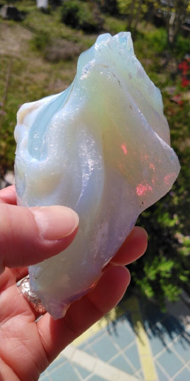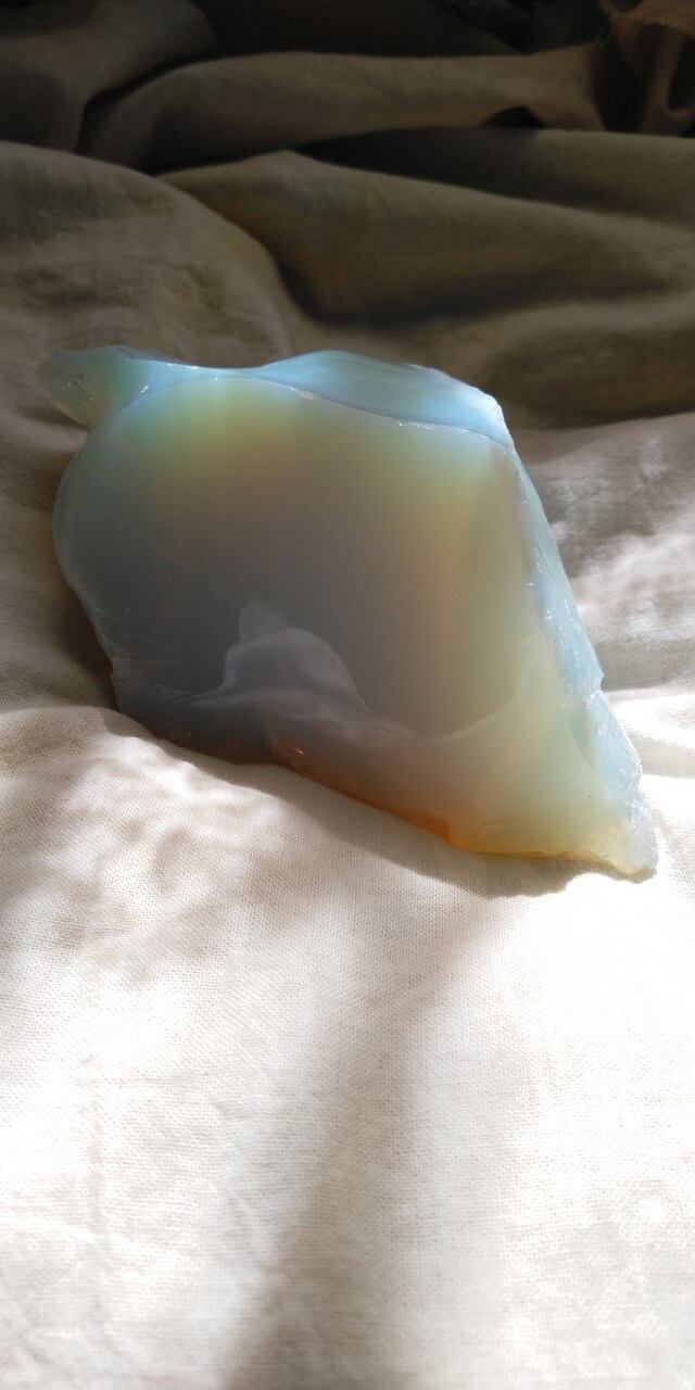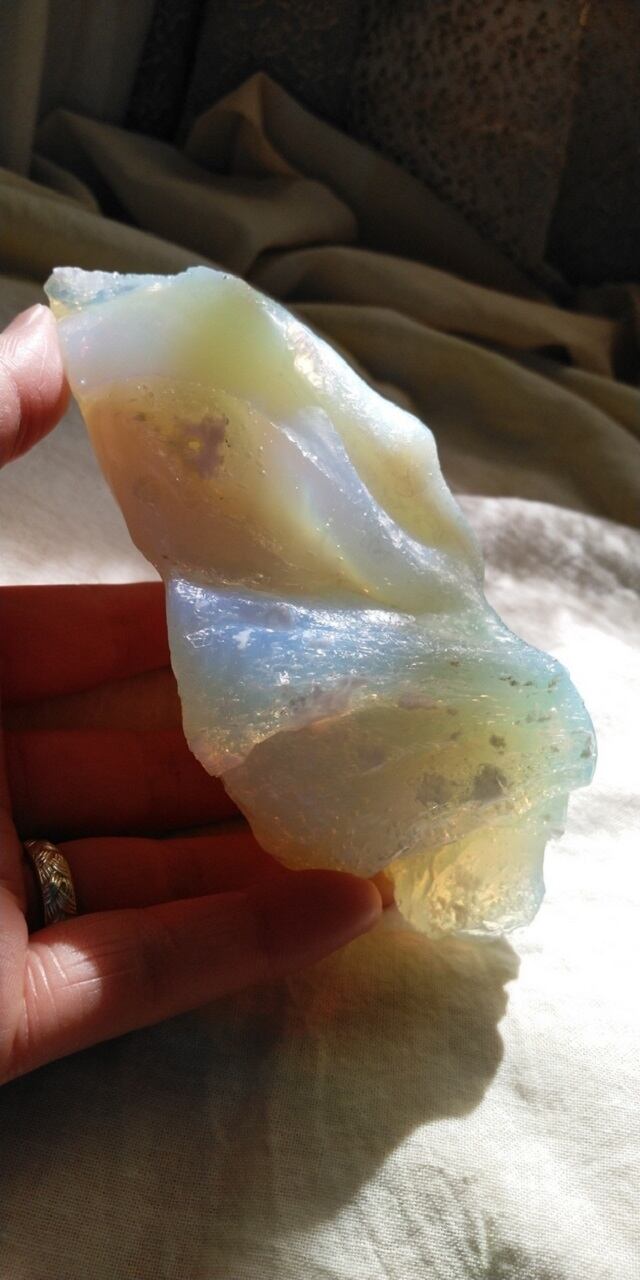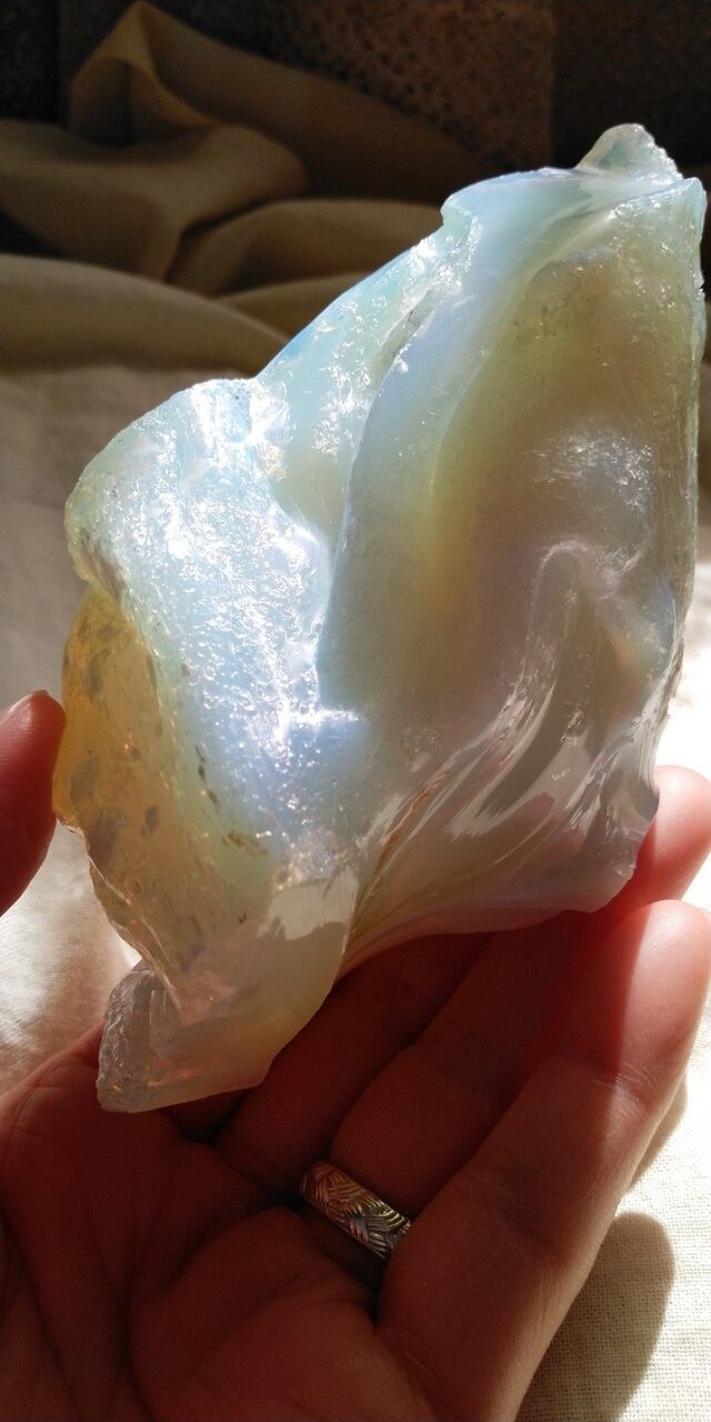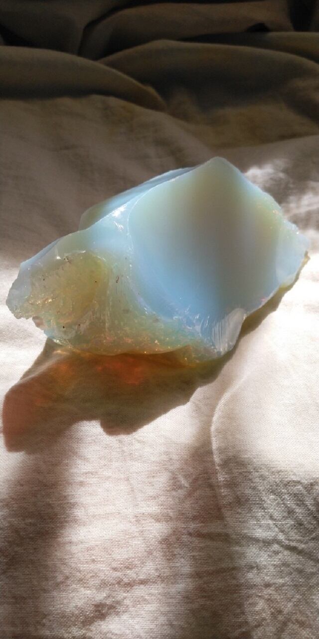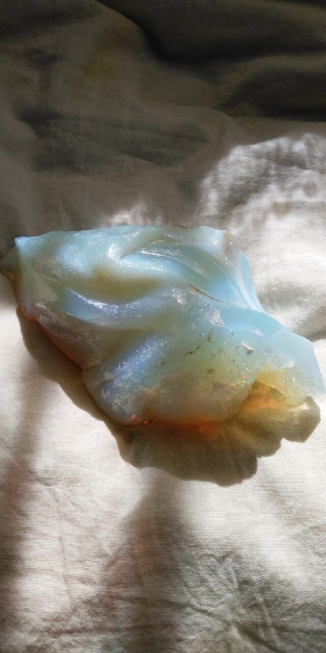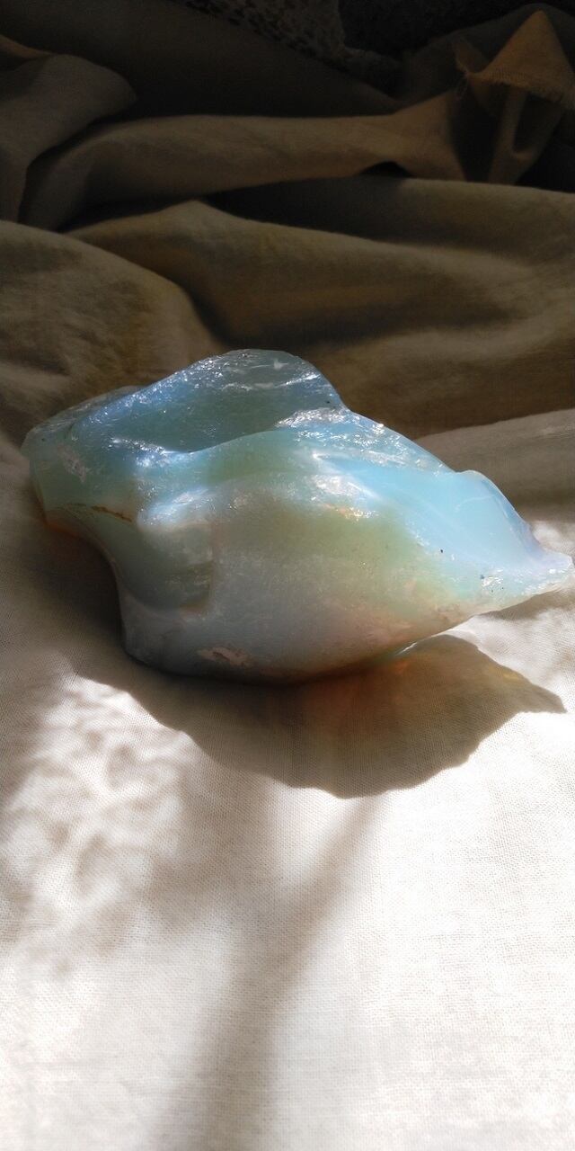こちらはミルキーなホワイトライトブルーカラーのアンダラクリスタルとなります。光の質によりミルキーなグリーンにも見える大変神秘的な石となります。天界との絆を高め、持つ方のハートを開き、バランスを保ちヒーリングし、不要なものを手放し、コミュニケーション能力のサポートストーンとなってくれるでしょう。光に透かすとホワイトオパールの様な美しい輝きを放ち、コーラルピンクやミルキーイエローの様な虹色も魅せてくれるのです。とても柔和な波動を感じとれることから、まるで眠る天使や天使の羽を感じさせられるアンダラクリスタルとなります。