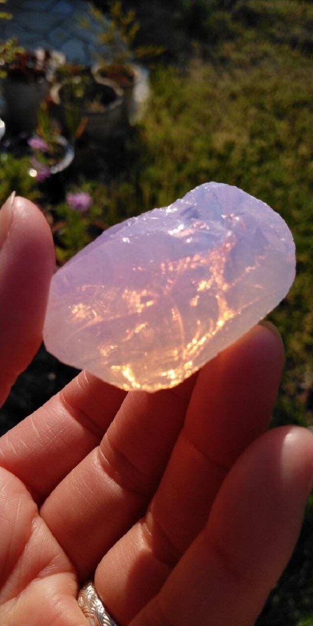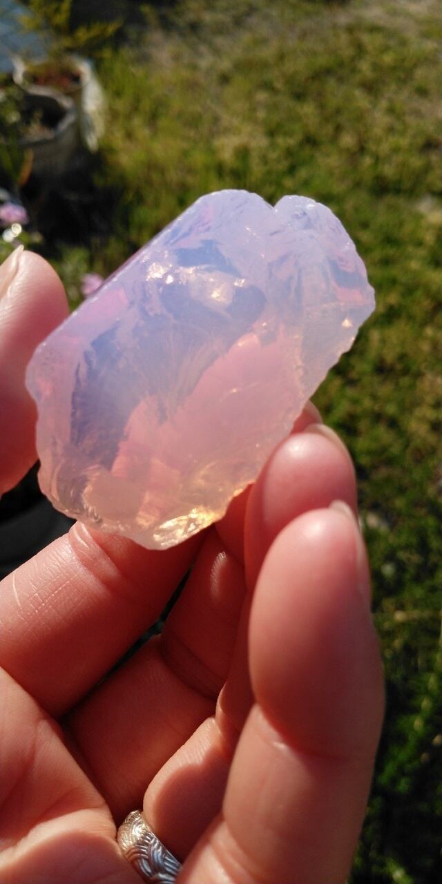 インドネシア産アンダラクリスタルのカラーバリエーションは多様にございますが、こちらは見た目にも優しくミルキーなピンクが可愛すぎる為、溜息がこぼれるほどのアンダラクリスタルとなります。感じ方は人それぞれ異なるでしょうが、これらのアンダラクリスタルからは持つ方を愛し愛され癒し癒される、その様な印象をお受けいたします。こちらは透明感があり明るいピンクに発色し、光の質や角度により明るいコーラルピンクが光り輝く大変美しい一点物のアンダラクリスタルとなります。虹も見られるスペシャルなワンピースとなります。
