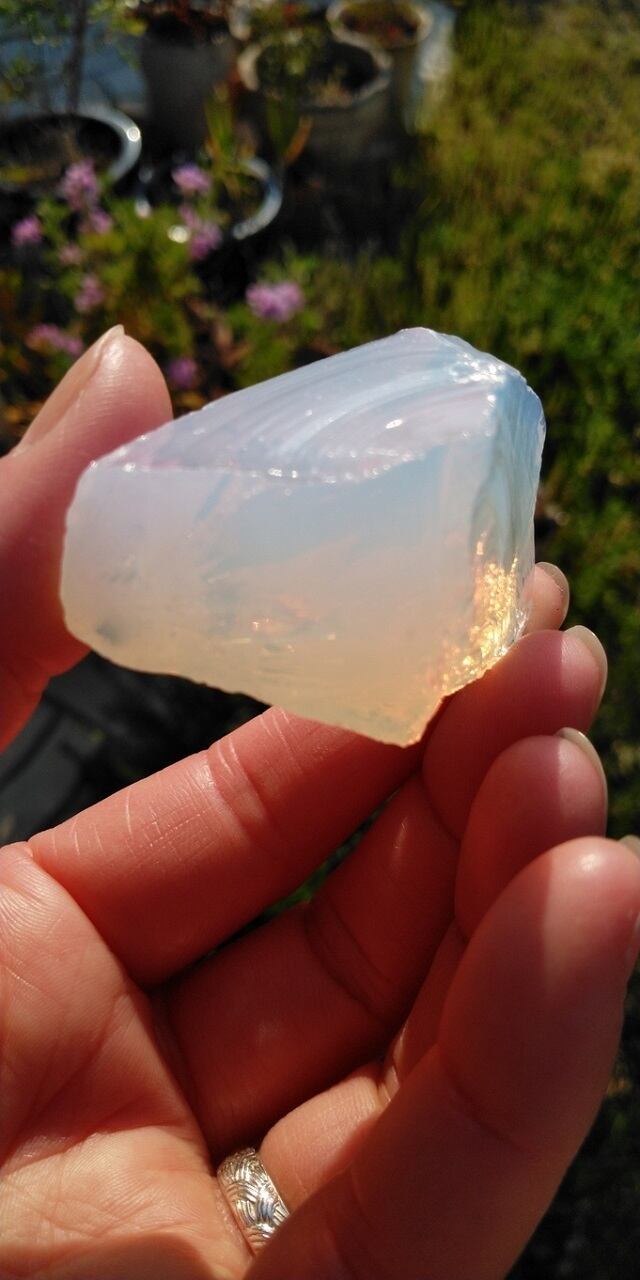インドネシア産アンダラクリスタルのカラーバリエーションは多様にございますが、こちらは優しい乳白色で艶やかなオパールホワイト(ミルキーホワイト)なアンダラクリスタルとなります。光の質や角度により、ほんのりアンバーから美しく優しいコーラルピンクにも見受けられます。波模様の様な表面はいつまでも見て触れていたいと感じる癒しのアンダラクリスタルとなります。
