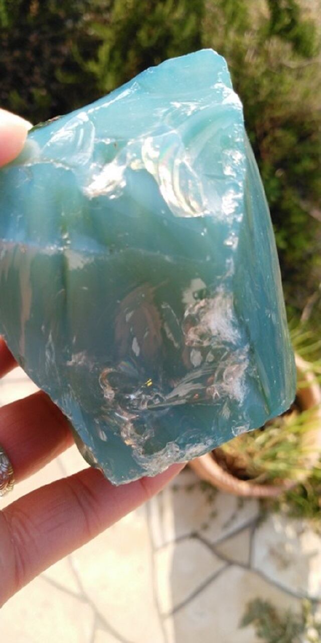 シェラネバダ産アンダラクリスタルのレアカラーなブルーラベンダーをお選びいただきました。光の質や角度によりブルーやラベンダーカラーに見え、大変美しく神秘的な石となります。気泡も見られ見ているだけでも癒されるのですが、手にするとより鮮明に光のエネルギーが感じられるのです。持つ方それぞれ感じ方、受け取り方は異なるでしょうが、自己のセンターに神聖を実感することのできる素晴らしく優美なエネルギーの石だと感じられます。ブルーラベンダーの中でも特に濃厚なカラーで、虹も見られる大変魅力的な石となります。