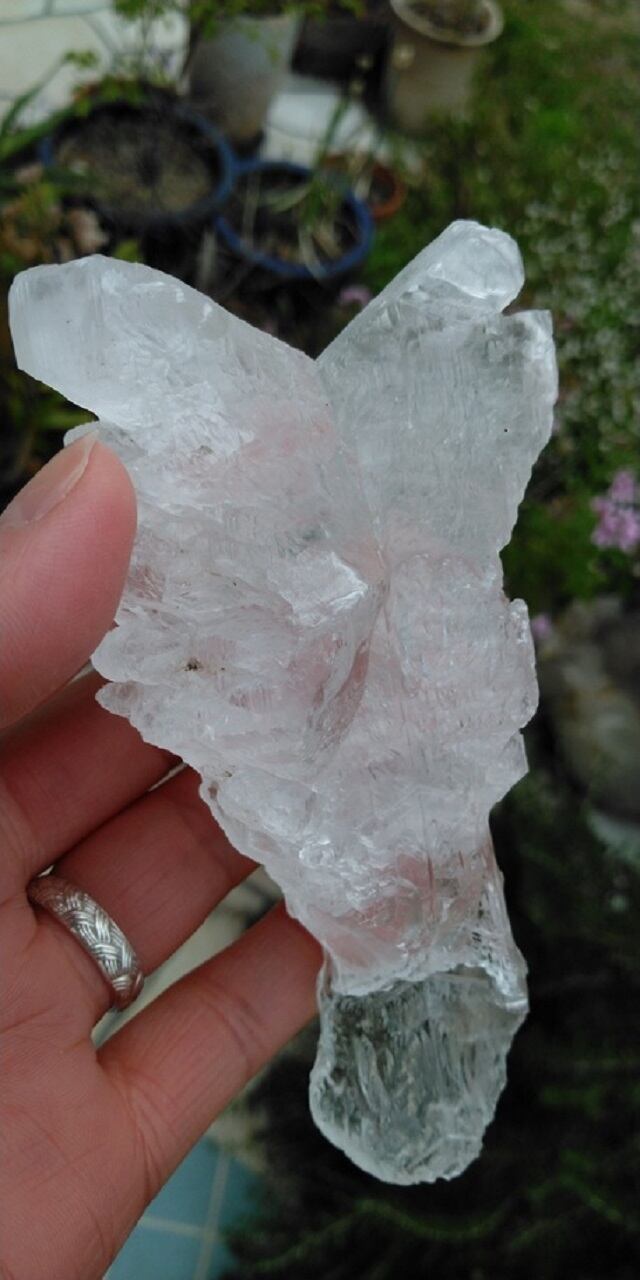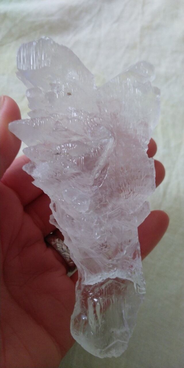 フィッシュテール・セレナイトといわれるのは、双魚の尾骨の様な形をしたギザギザの外見が特徴だからです。和名では「魚尾状双」と記されます。天使との繋がりを促すともいわれる為、別名「天使の羽」として知られるフィッシュテール・セレナイトでもあります。こちらのセレナイトは片手で握れるサイズですので、ワンドの様なヒーリングツールとしてもサポートしくれそうです。