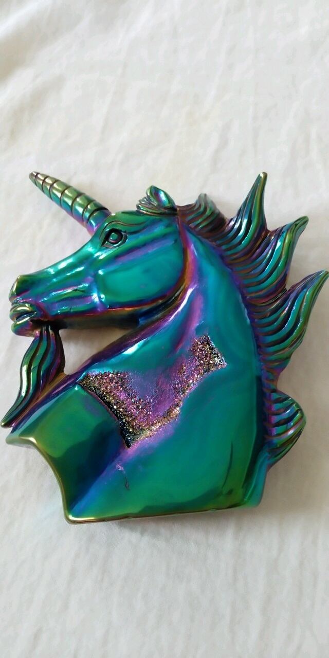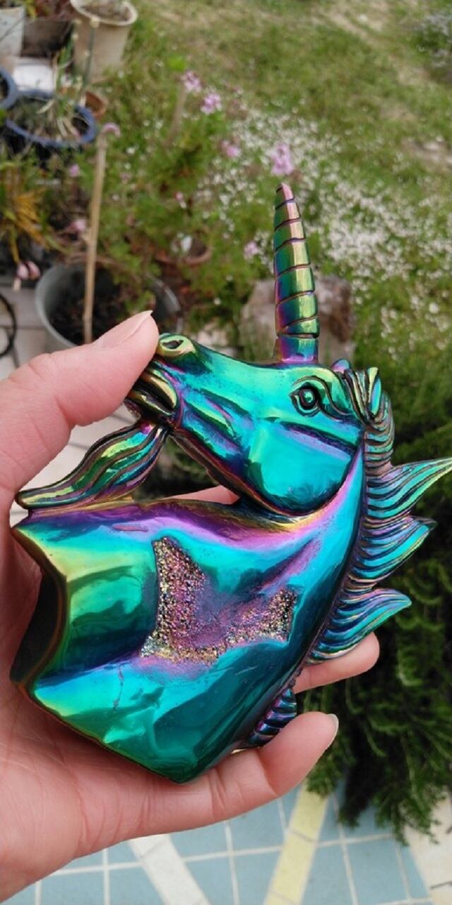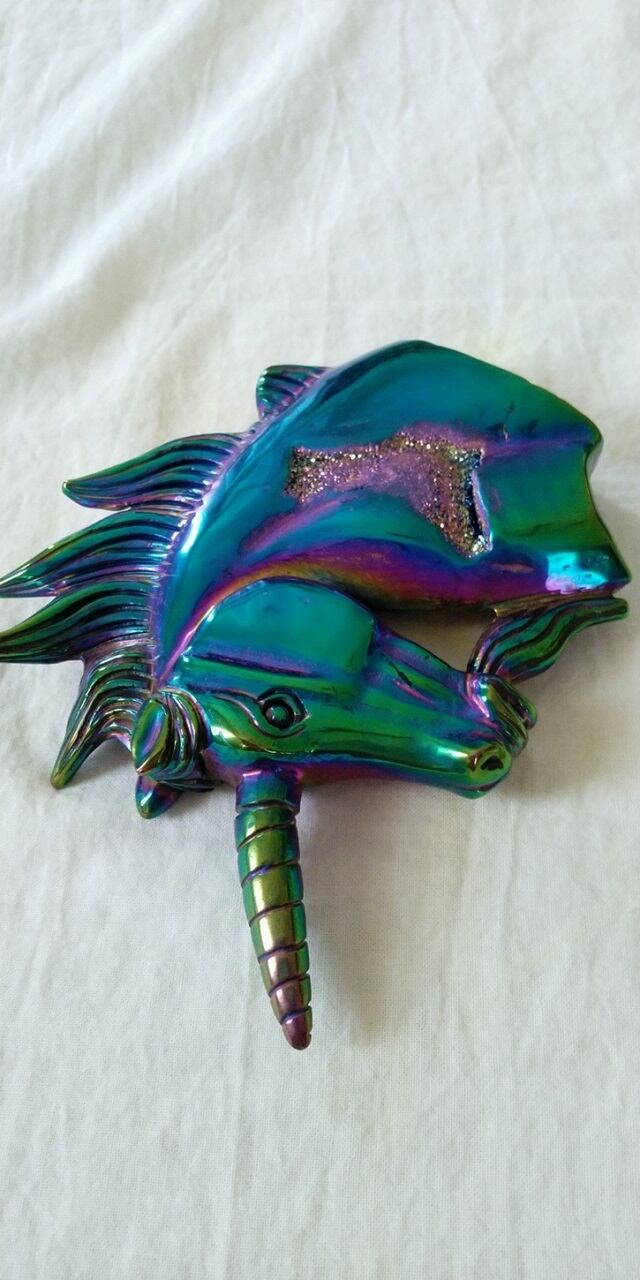 石:レインボーオーラ加工・ジオード ユニコーンシェイプ(ユニコーン彫り)