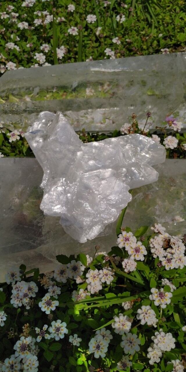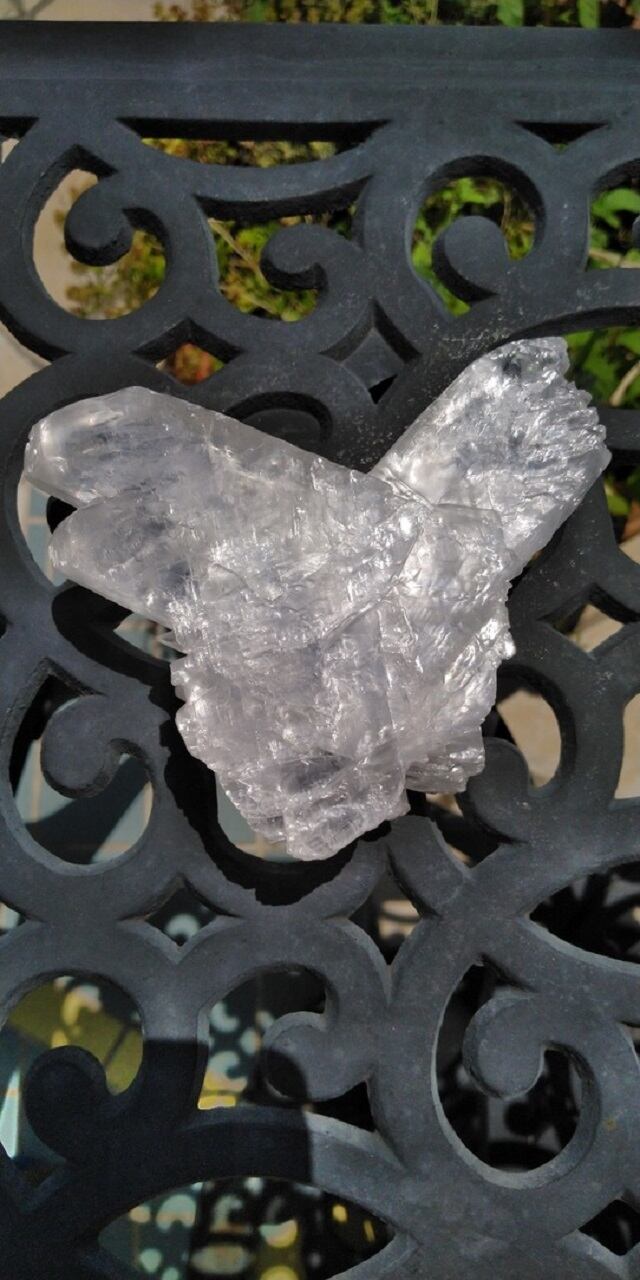 フィッシュテール・セレナイトといわれるのは、双魚の尾骨の様な形をしたギザギザの外見が特徴だからです。和名では「魚尾状双」と記されます。天使との繋がりを促すともいわれる為、別名「天使の羽」として知られるフィッシュテール・セレナイトでもあります。こちらのセレナイトは掌の上に収まるサイズとなります。ハートの様なシェイプにも、天使が羽を広げている様にも見えます。人それぞれ感じ方は異なるでしょうが、艶めき煌めくこちらのセレナイトには見ているだけでも癒されております。