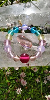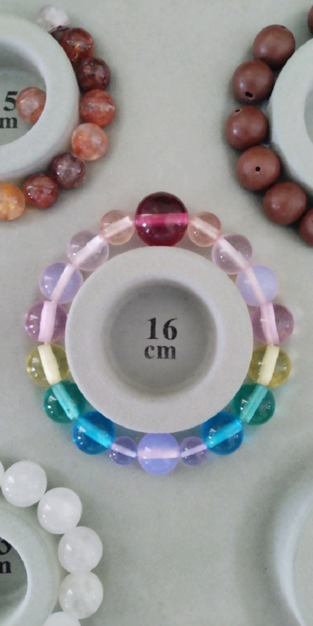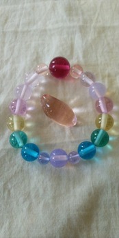 多様で美しいピンク色を贅沢に組みデザインブレスレットを制作いたしました。レインボーグラデーションも意図し、エネルギーを感じ取りながら、隣り合う珠同士の相性を何度も確認し完成したのです。人それぞれ感じ方は異なるでしょうが、甘すぎず大人可愛いデザインブレスレットではないでしょうか(#^^#)
