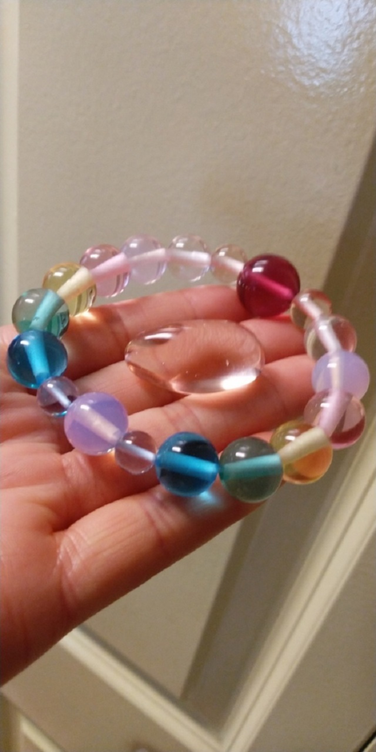 インドネシア産アンダラクリスタル Ten colors オリジナルデザインブレスレット 内径約16~16,5㎝ with アンダラ・ミニタンブル(アプリコット)