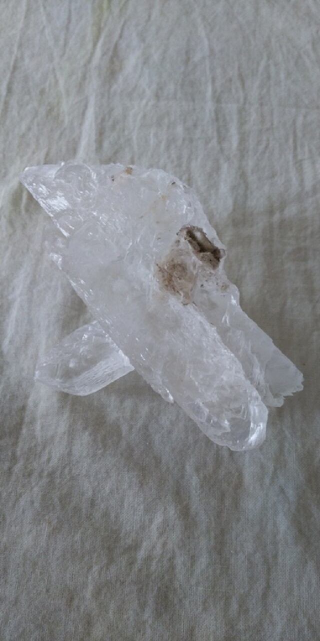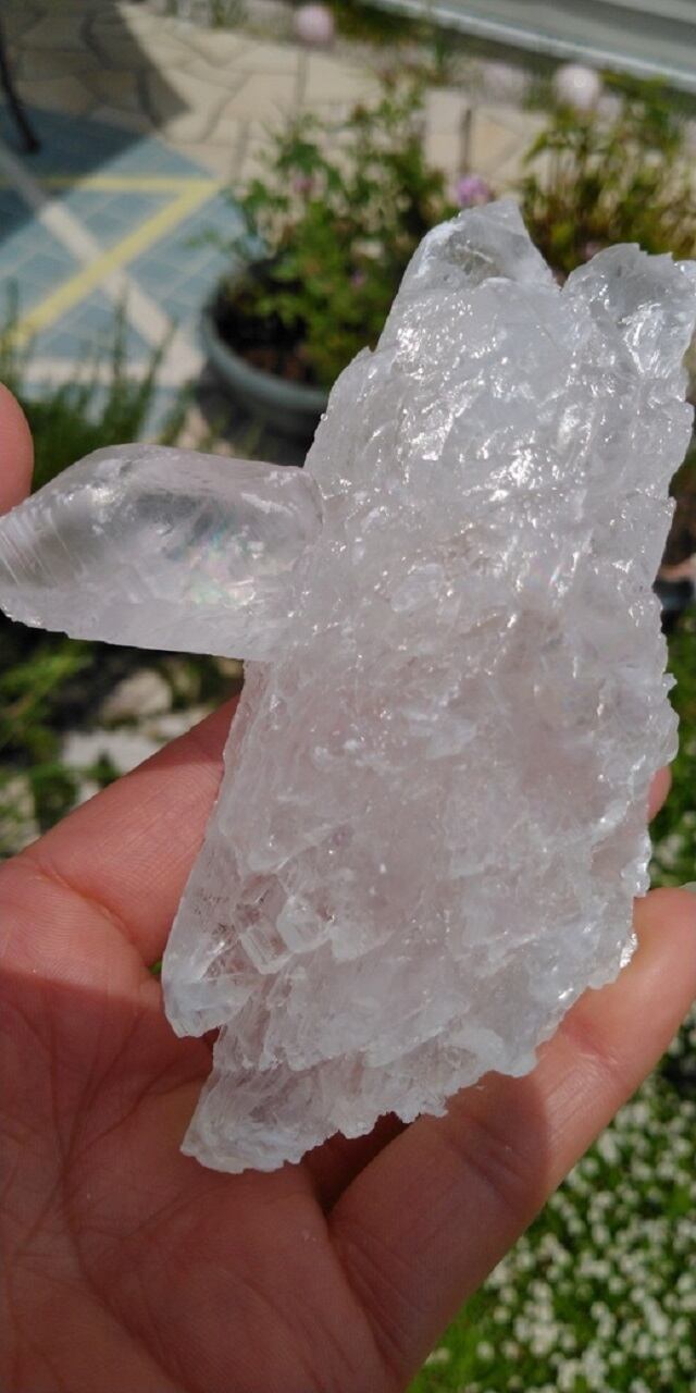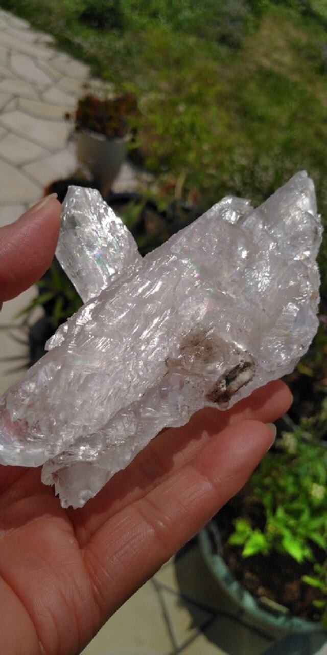 フィッシュテール・セレナイトといわれるのは、双魚の尾骨の様な形をしたギザギザの外見が特徴だからです。和名では「魚尾状双」と記されます。天使との繋がりを促すともいわれる為、別名「天使の羽」として知られるフィッシュテール・セレナイトでもあります。こちらのセレナイトは掌の上に収まるサイズとなります。美しい虹が複数個所見られる大変魅力的な石となります。人それぞれ感じ方は異なるでしょうが、艶めき煌めくこちらのセレナイトには見ているだけでも癒されております。