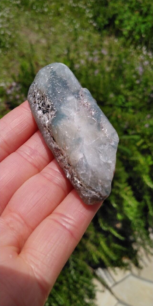 アースシードライトは2014年、北インドのヒマーチャルプラデーシュ州マニハールのヒマラヤ水晶の採掘中に発見された新しい鉱物で、約25~38億年前に南極付近の地球深部で形成された変成岩といわれます。南極付近より大陸移動、そしてヒマラヤの形成とも関わる大変歴史のある、近年発見された石となります。様々な地殻変動を経た青色のサフィリン、藍色や緑色など多色性を有するコーディエライト、繊維状鉱物であるシリマナイト(珪線石)と、更に微量のマイカと共生していることから、奇跡の鉱物といわれます。アースシードライトはマスターヒーラークリスタルともいわれ、全身のチャクラエネルギーの流れを調整し、浄化にも適応してくれる石として知られます。所々見られるメタリックなシルバーカラーが煌めき、重量感もある希少な石であり、私物にしたくなってしまう程にミステリアスで興味深い石となります。