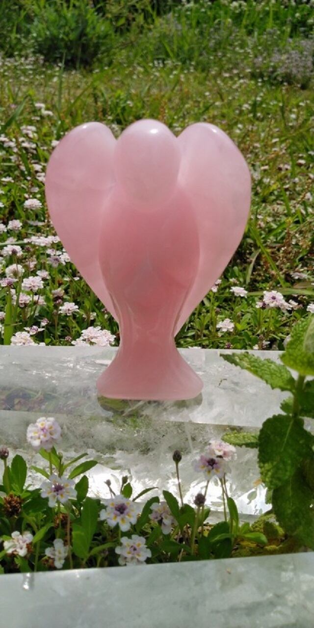 ローズクォーツの発色も濃く、美しい一点物のエンジェル(天使)となります。優し気に手を合わせるエンジェルの細かなカービングには感動いたしました。