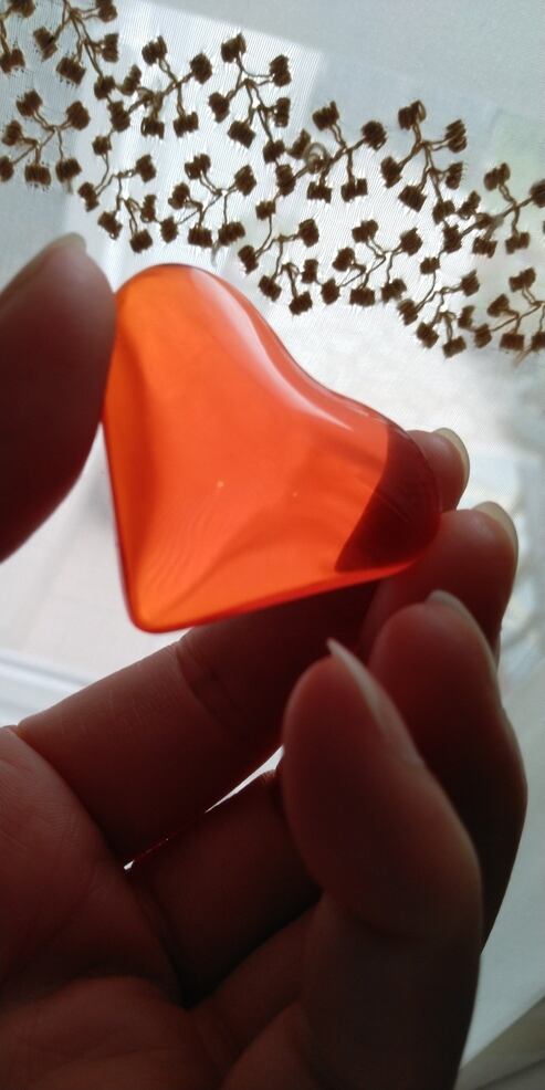感謝プライス ✡ インドネシア産 アンダラクリスタル オレンジレッド ハートシェイプ 重さ約18~19g ポーチ付属