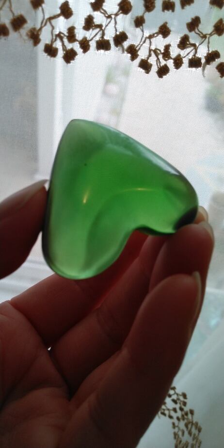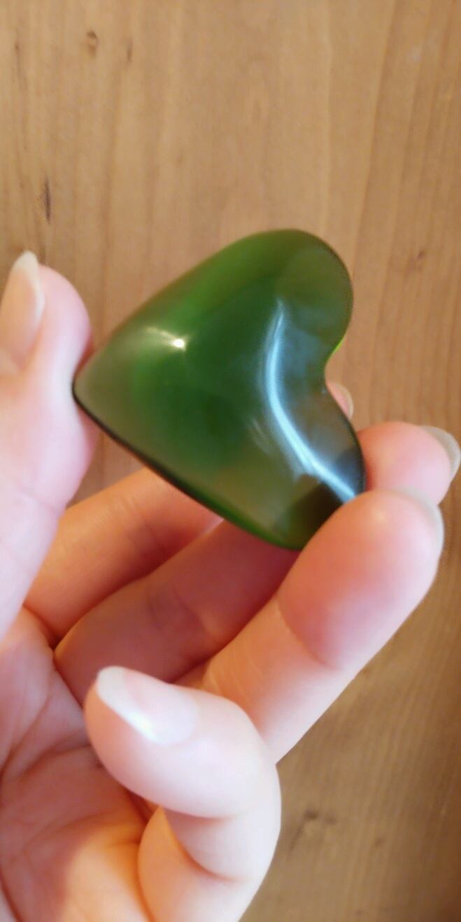 感謝プライス ✡ インドネシア産 アンダラクリスタル グリーン(気泡入り) ハートシェイプ 重さ約25~26g ポーチ付属