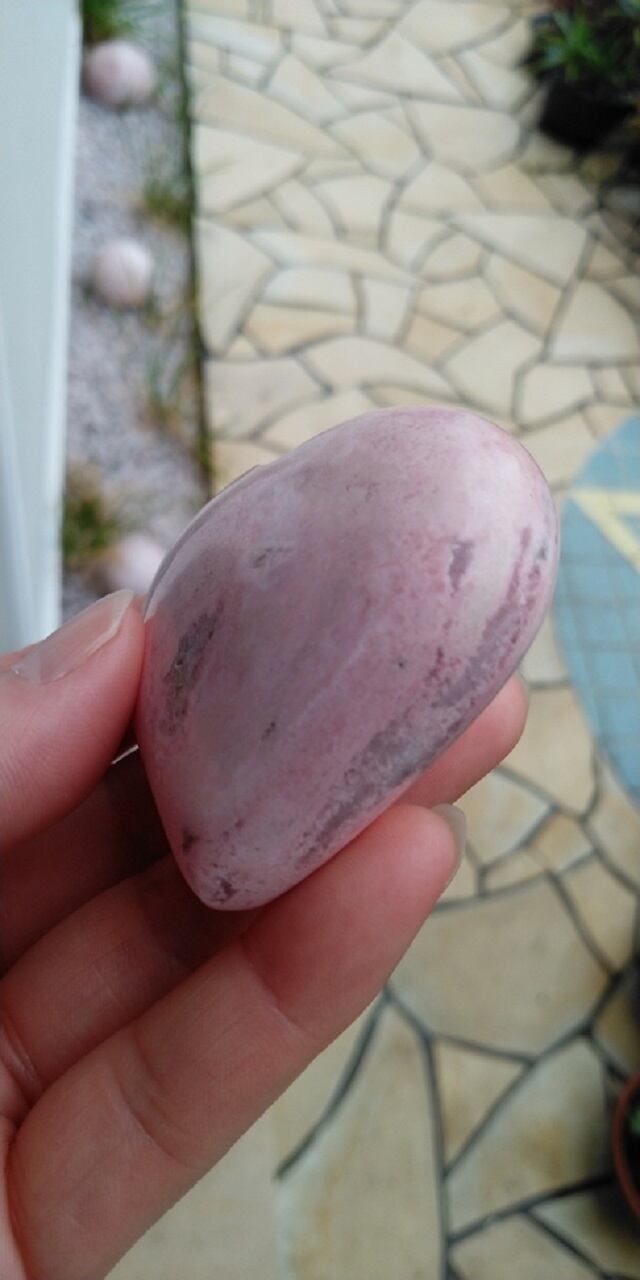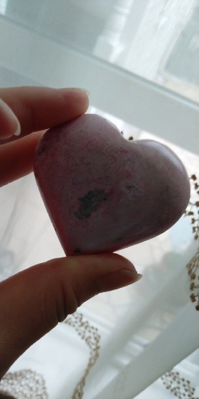ペルー産 ミルキーピンク・インカローズ(ロードクロサイト) ハートシェイプ 重さ約125g