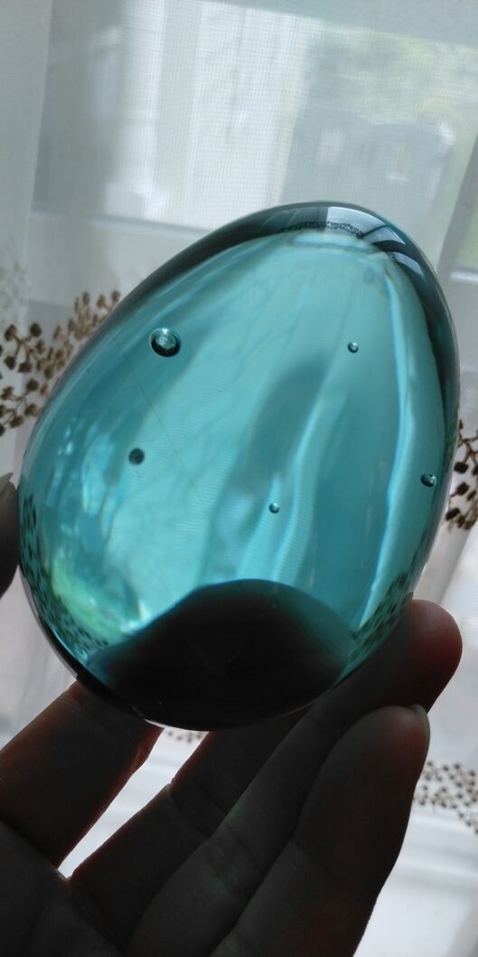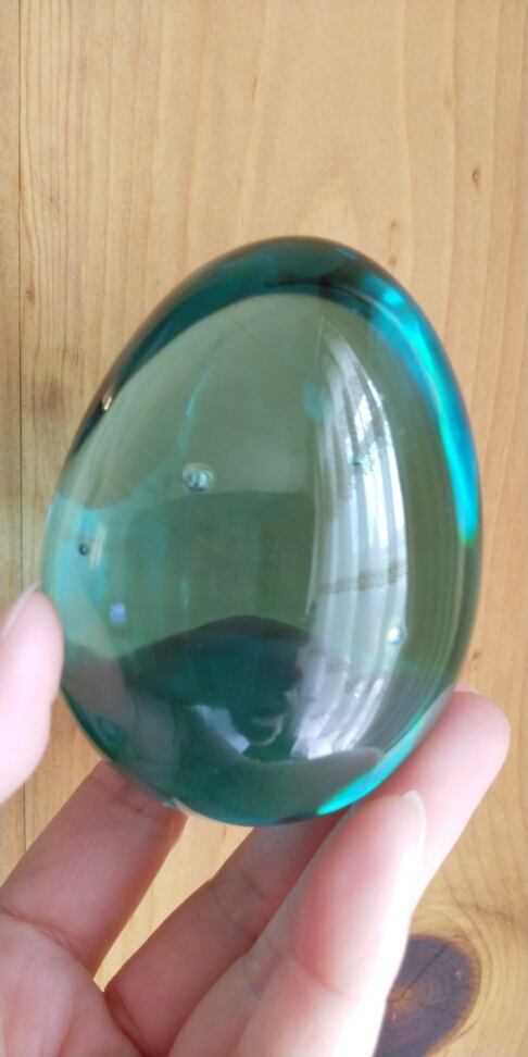 インドネシア産アンダラクリスタル ブルーグリーン(気泡・ライン入り) エッグシェイプ(卵型) 重さ約344g