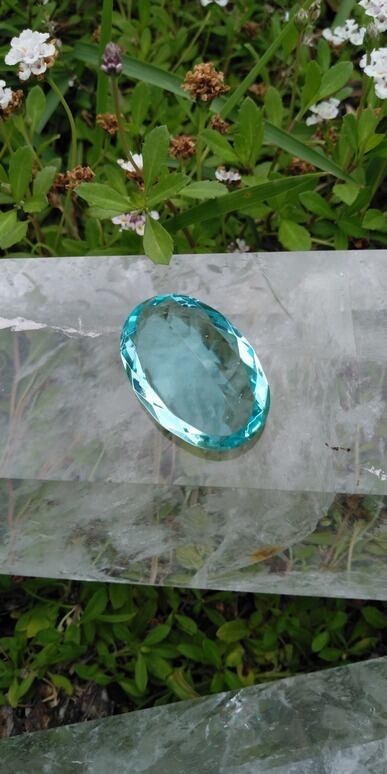 感謝プライス ✡ インドネシア産アンダラクリスタル シアンブルー(気泡入り) オーバルラウンドカット 重さ約8g