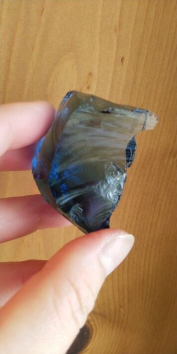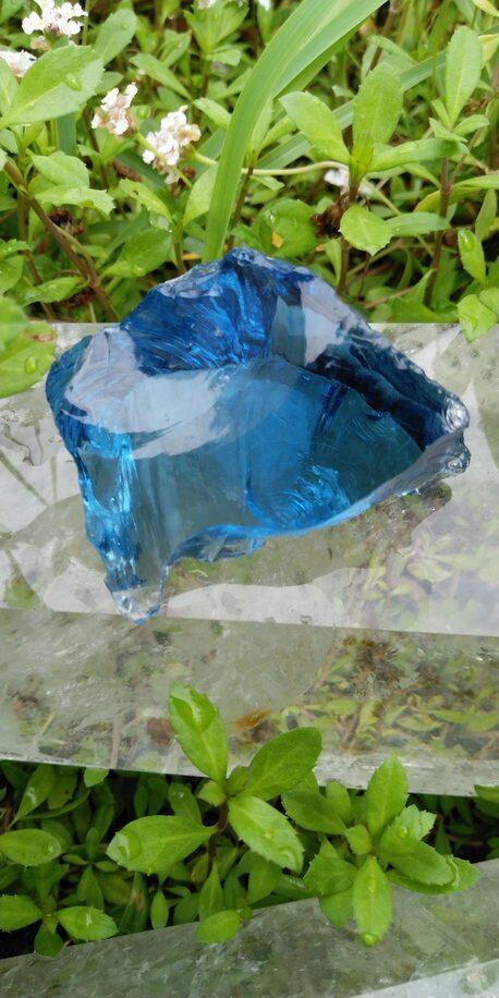 インドネシア産アンダラクリスタルのカラーバリエーションは多様にございますが、こちらは穏やかな海の様な優しいブルーと一部クリアな部分が見られるアンダラクリスタルとなります。人それぞれ感じ方は異なるでしょうが、波模様のようなエッジや穏やかな色合いを見て触れていると、心身共に癒されてしまうのです。