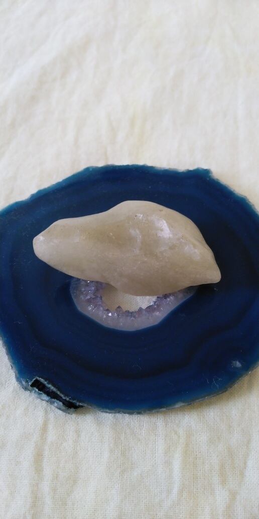 こちらは原石となります。自然に欠けている部分もございますが、全体的にはツルツルしております。人それぞれ感じ方は異なるでしょうが、手触りも本当に柔和で優しい気持ちになります。持つ方の御護り石、瞑想時にはサポートストーンとなってくれるでしょう。