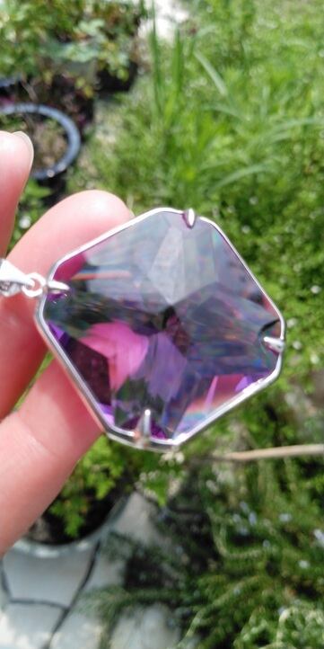 ペンダント:インドネシア産アンダラクリスタル パープルピンク 最大幅約34,5㎜(アンダラ部分)、最大幅約44㎜(バチカン部分含む)