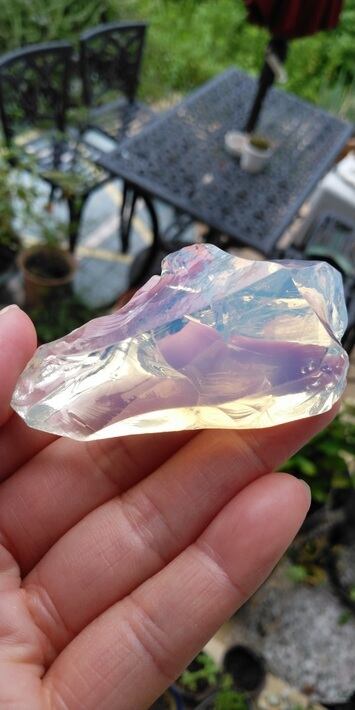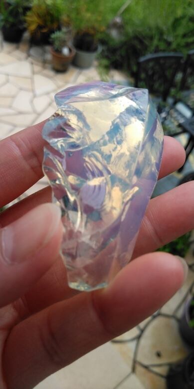 アンダラクリスタルのカラーバリエーションは多く見られますが、こちらは当ショップでも特に人気の高いホワイトオパールとなります。エンジェルオーラともいわれる神秘的な美しい色合いを魅せてくれるのです。光の質や当たり方により、煌めきとカラーチェンジするかのような美しい色合いは、視覚からも癒されます。手にするとクラウンチャクラがオープンとなり、天使のような優しくも心強いエネルギーが全チャクラを活性化、そして癒してくれる印象を受けるアンダラクリスタルとなります。刻まれたかのようなエッジは見て触れていると癒されてしまうのです。瞑想時にはサポートストーンとなってくれるでしょう。