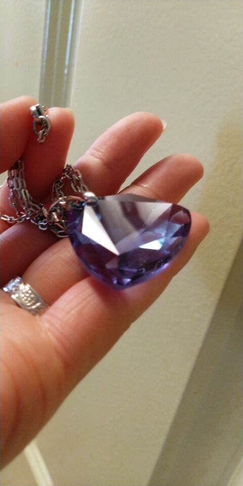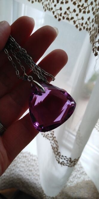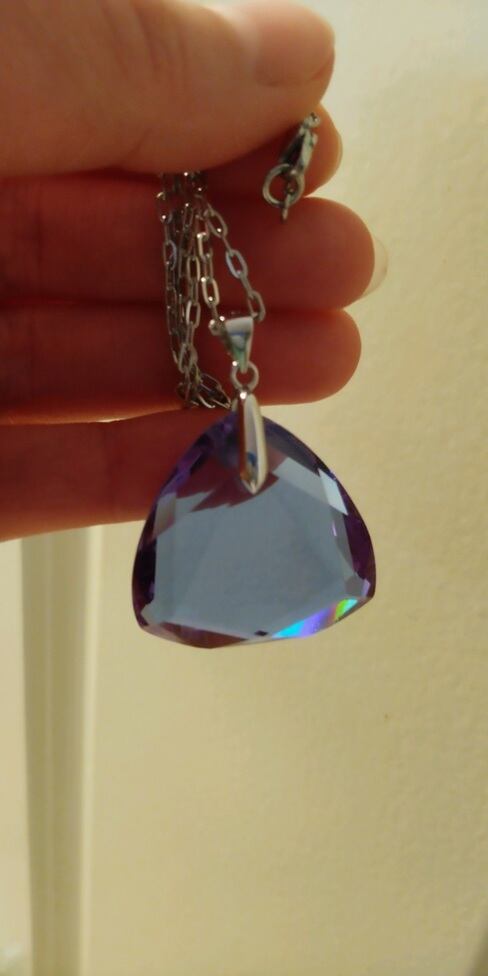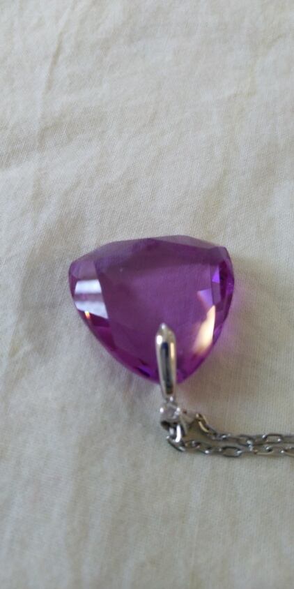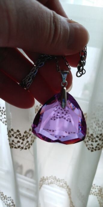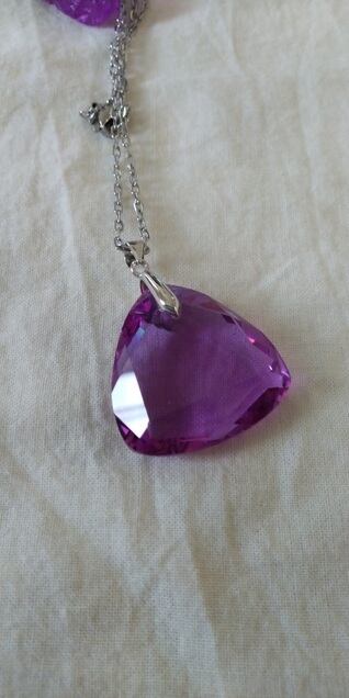 煌めく多角面カット ✡ インドネシア産アンダラクリスタル パープルピンク(カラーチェンジ・気泡由来の凹みあり)ペンダントトップ & ステンレススチール316L チェーン(約60㎝)ポーチ付属
