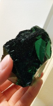 インドネシア産アンダラクリスタル 虹入りエメラルドグリーン(気泡・ライン入り)重さ約273g