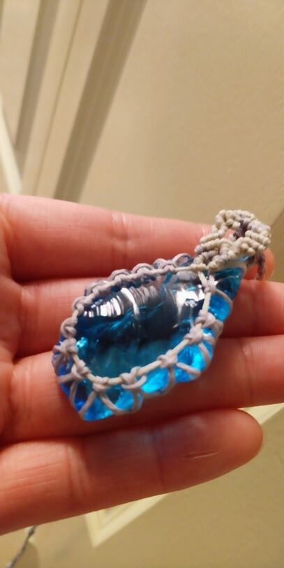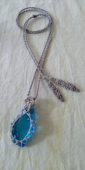 インドネシア産 アンダラクリスタル ルミネッセント・ブルー マクラメ編みデザインネックレス 紐長さ約88㎝位まで調節可能