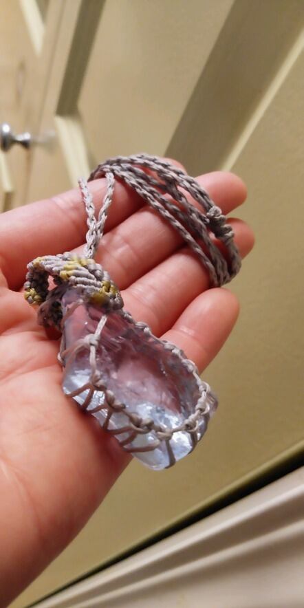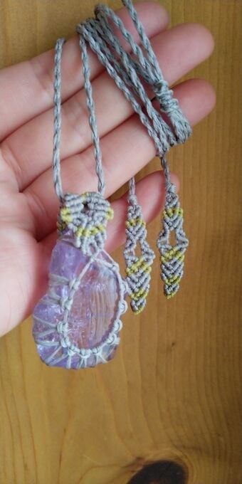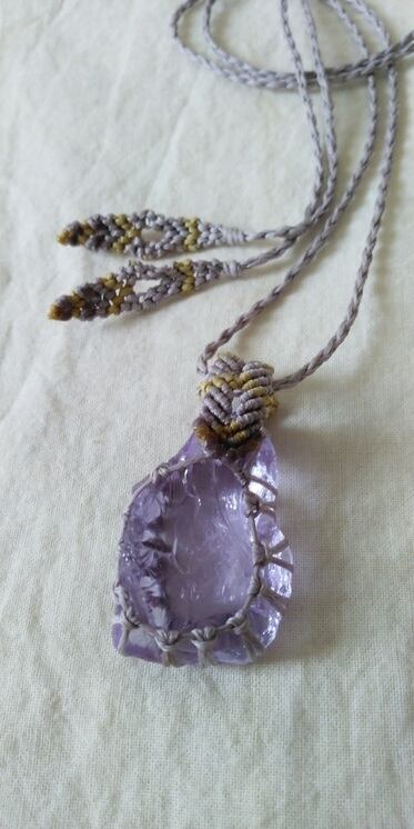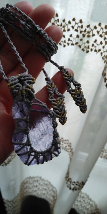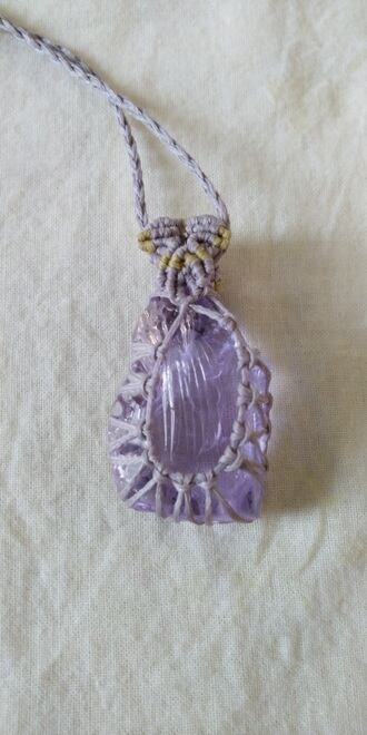 インドネシア産 アンダラクリスタル ライラック(カラーチェンジ) マクラメ編みデザインネックレス 紐長さ約94㎝位まで調節可能