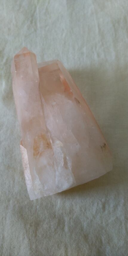 そしてこちらはマダガスカル産となります。透明から磨りガラスの様な表面もみられ、優しいサーモンピンク色(オレンジ~ピンク)に発色しております。マダガスカル島は自然豊かな島であり、様々な水晶や宝石類の鉱石が採掘されている、鉱物界や宝石界でも有名な島となります。