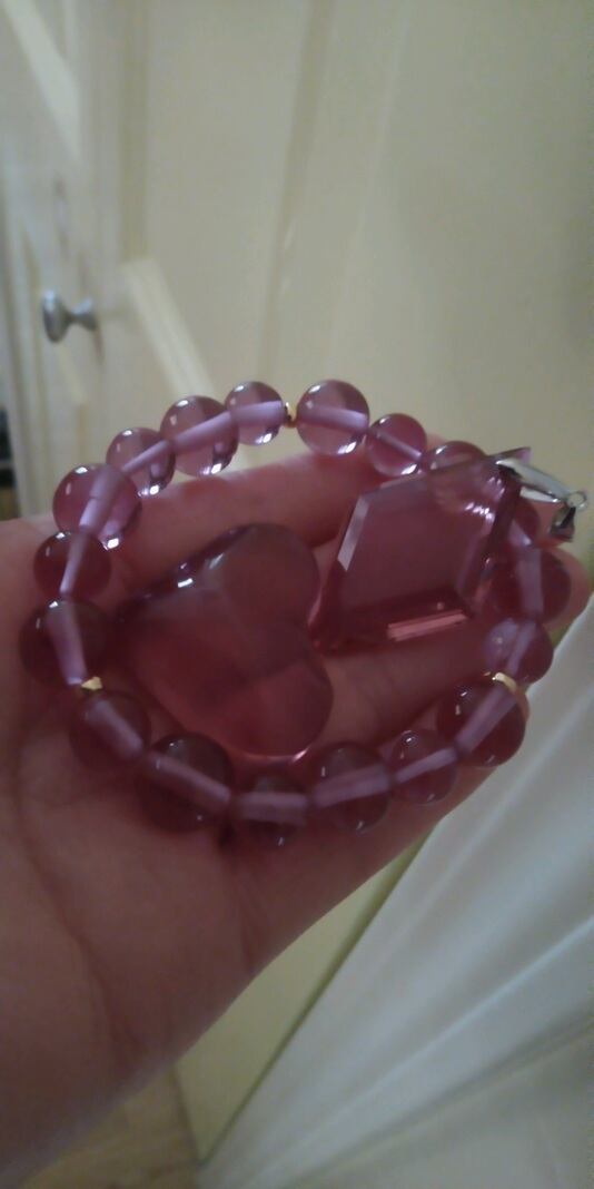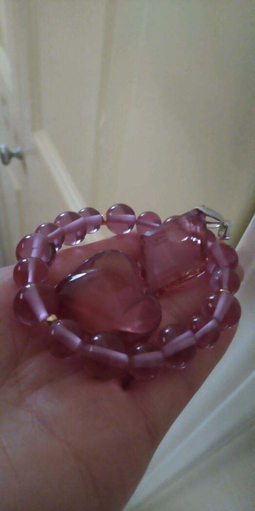 限定品 ✡ インドネシア産 アンダラクリスタル ミスティック・インディアンレッド(カラーチェンジ)オリジナルデザインブレスレット (18金製スペーサー三個) & ハートシェイプ(重さ約19~20g)& 多角面カットペンダントトップ (重さ約10~11g)ポーチ三個付属