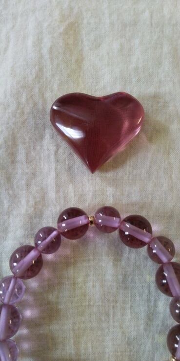 インドネシア産アンダラクリスタルのカラーバリエーションは多様にございますが、こちらはレアカラーで、お問い合わせを頂く機会が特に多いインディアンレッドのアンダラクリスタルとなります。天然石に例えるならば高品質なチベット産アンデシンのようなお色目となります。自然光の元では赤褐色を帯びた艶やのあるインディアンレッドカラーに見えるのですが、蛍光色元では輝くイエローからオリーブグリーンにカラーチェンジして見えるのです。ブレスレットは珠の大きさやエネルギーのバランスを取りデザインさせて頂きました。感じ方は人それぞれ異なるでしょうが、インディアンレッドからは大変強い波動や温かなエネルギーが感じられるのです。ハートシェイプのアンダラクリスタルはヒーリングや瞑想時にはサポートストーンとなってくれるでしょう。多角面カットの施されたペンダントトップは持つ方の元でそっと寄り添ってくれるでしょう。お手持ちのチェーンや革紐等をお合わせ下さいませ。