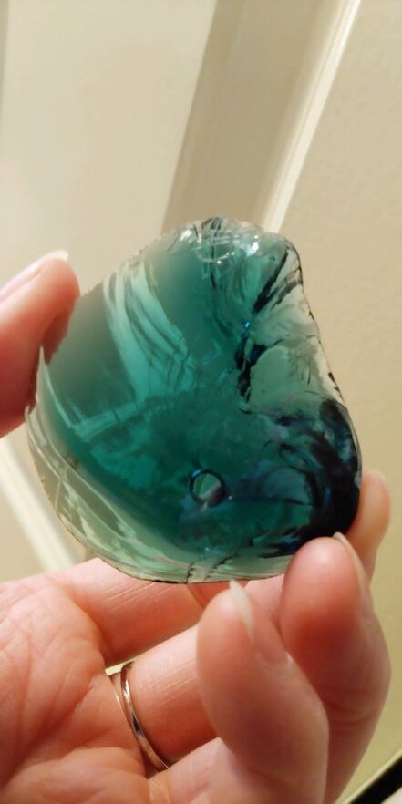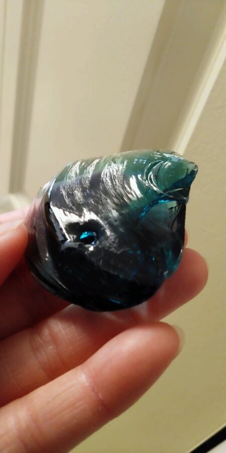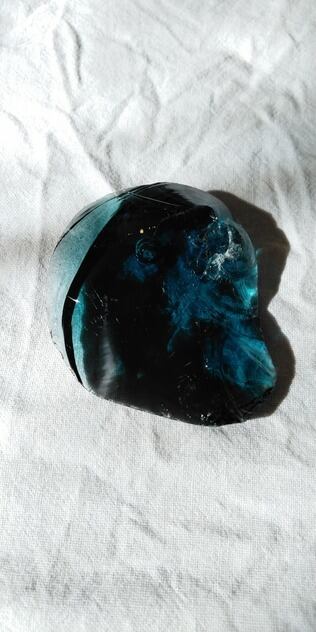 アンダラクリスタルのカラーバリエーションは多く見られますが、こちらは当ショップでも大変人気の高いイナンナズ・ウィズダムとなります。深いディープブルーグリーン由来によりインディゴという名がつくのです。遥か遠く南国の海に魂がトリップしてしまう様なイナンナの鮮やかなブルーグリーンは、持つ方を潜在意識まで繋げてくれるでしょう。シーフォーム(気泡)由来による大きな凹みや美しい虹が見られる大変魅力的なアンダラクリスタルとなります。人それぞれ感じ方は異なるでしょうが、不思議なフォルムや波のような模様にも目が惹かれてしまうのです。