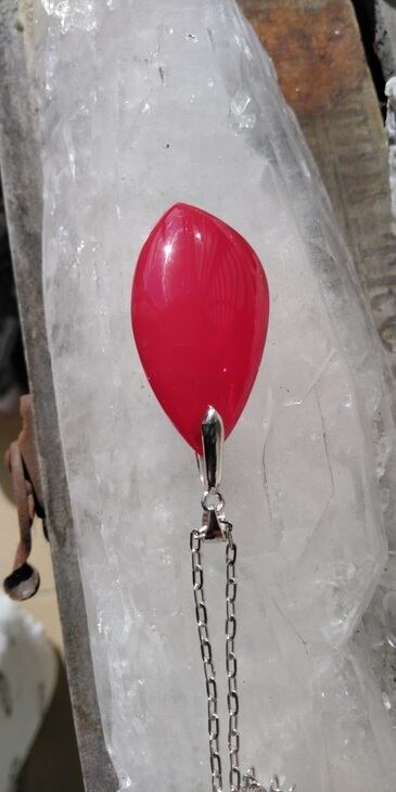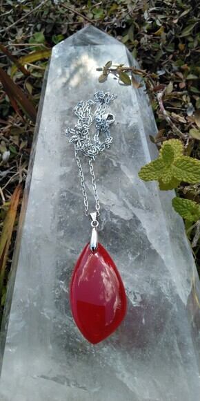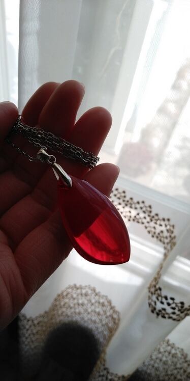 限定品 ✡ インドネシア産アンダラクリスタル レッド ペンダントトップ&ステンレススチール316製ネックレスチェーン(約60㎝)ポーチ付属